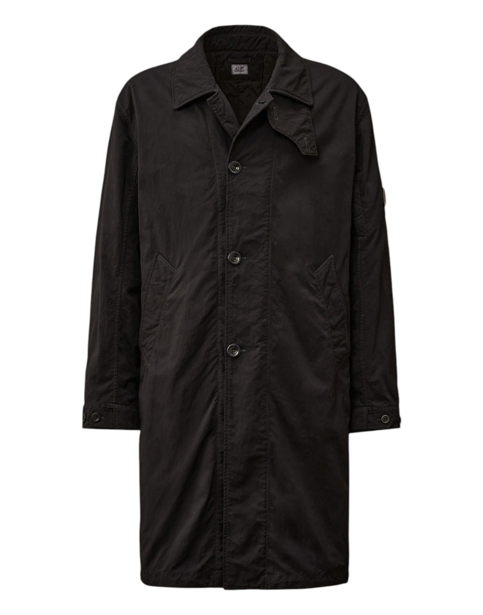 Trench imbottito dal design elegante e funzionale, realizzato in twill rinforzato sinistro con filati doppi in nylon taslan. Un tessuto leggero, resistente e strutturato, valorizzato dalla tintura garment-dyed che crea un effetto cromatico unico. L'orlo posteriore a coda di pesce (fishtail) aggiunge un dettaglio distintivo, unendo praticità e stile urbano.