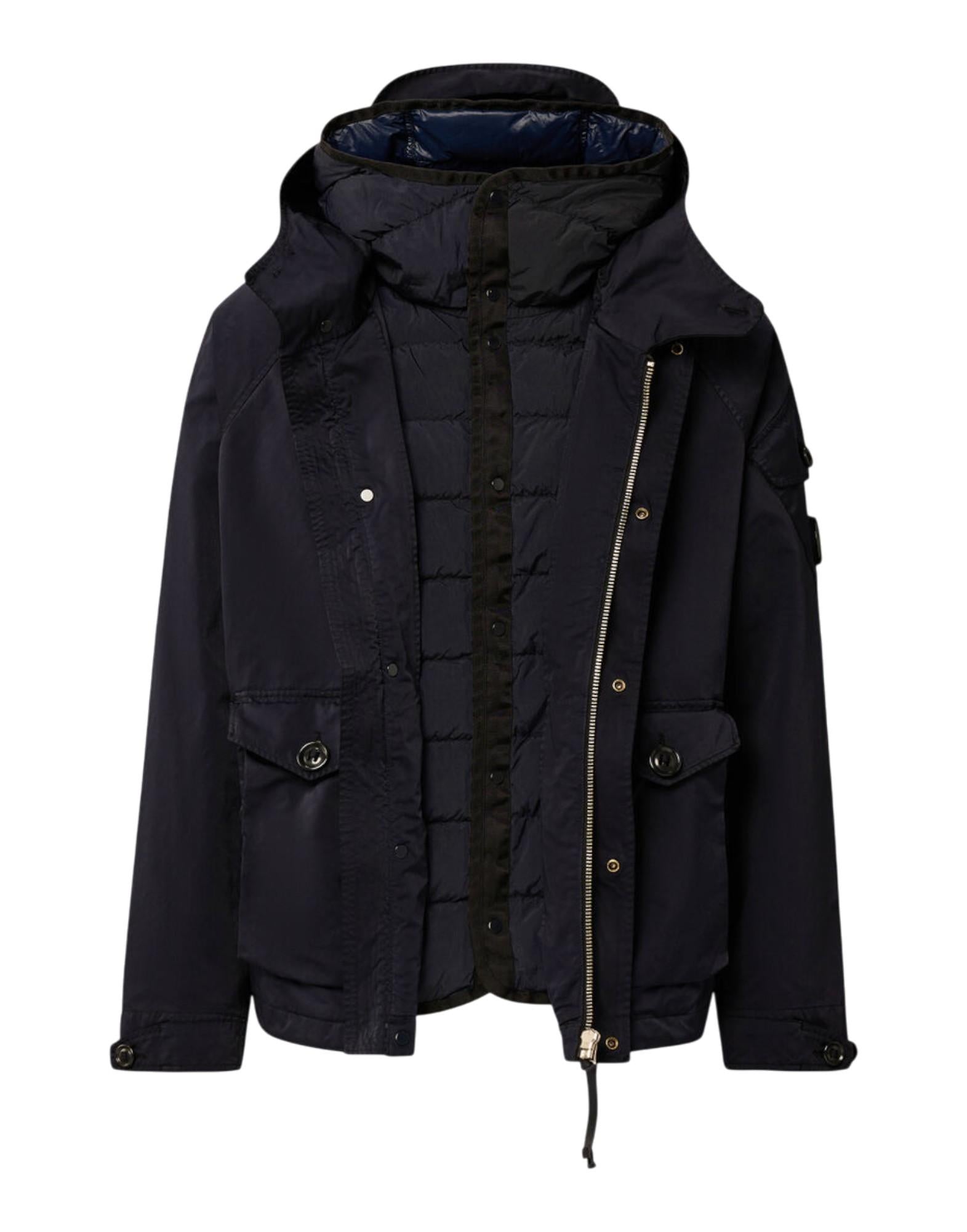 Completata da polsini regolabili con bottoni e da un piumino interno staccabile con cappuccio, fissato con bottoni automatici. Il capo è tinto in capo e trattato con finitura anti-goccia. Vestibilità regular fit.
