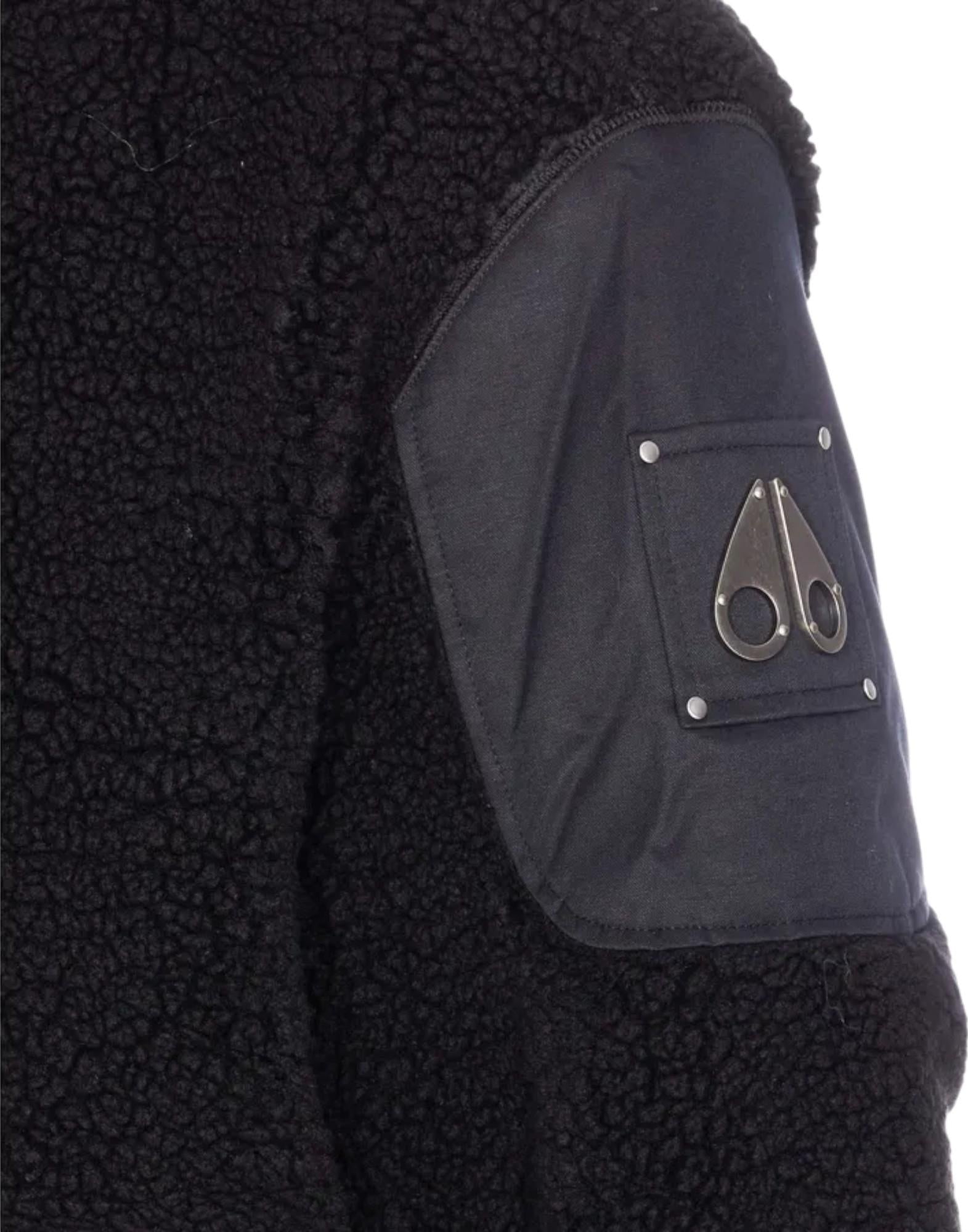 Giacca dallo stile sportivo e contemporaneo, realizzata in morbido pile sherpa combinato con inserti in tessuto tecnico per garantire comfort termico e resistenza agli agenti esterni. Il design presenta un colletto rialzato e una zip frontale oversize che dona al capo un aspetto deciso e funzionale. Le tasche laterali con chiusura a bottone, la tasca sul petto con zip e le tasche interne offrono praticità e spazio per gli oggetti essenziali, mentre i polsini e l'orlo elastici assicurano una perfetta aderenza e protezione dal vento. Il logo Moose Knuckles ricamato sulla manica destra completa il look con un tocco distintivo. Ideale come giacca leggera o strato intermedio, è perfetta per la stagione fredda in città.
