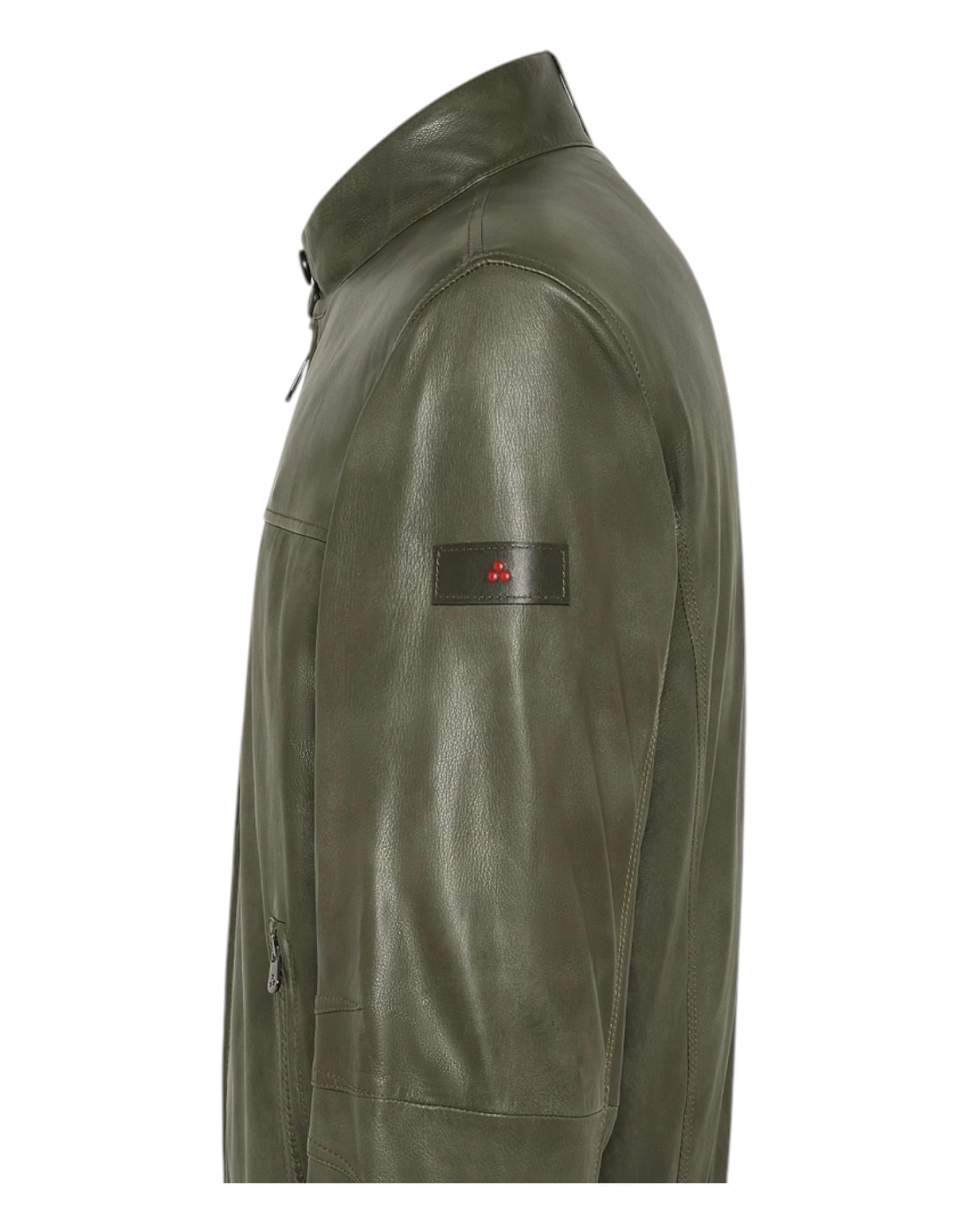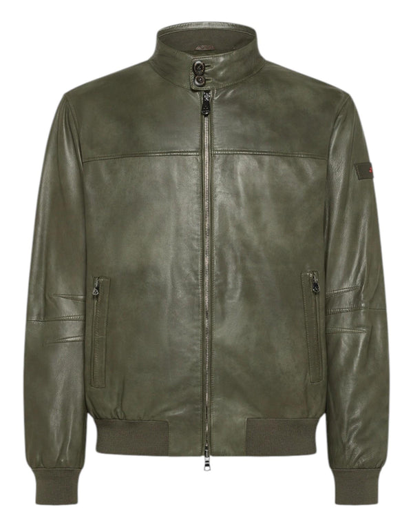 Bomber in pelle dall'aspetto vintage, realizzato mediante una lavorazione artigianale che combina spruzzatura del colore sulla nappa e rifinitura manuale. Il risultato è un capo unico, destinato a sviluppare un carattere sempre più distintivo nel tempo. La silhouette compatta è valorizzata da zip centrale a doppio cursore, colletto con bottoni e fondo e polsini in maglina elasticizzata. L'imbottitura in piuma naturale certificata assicura calore ed estrema leggerezza, mentre lo stile heritage si fonde con un'anima tecnica contemporanea.