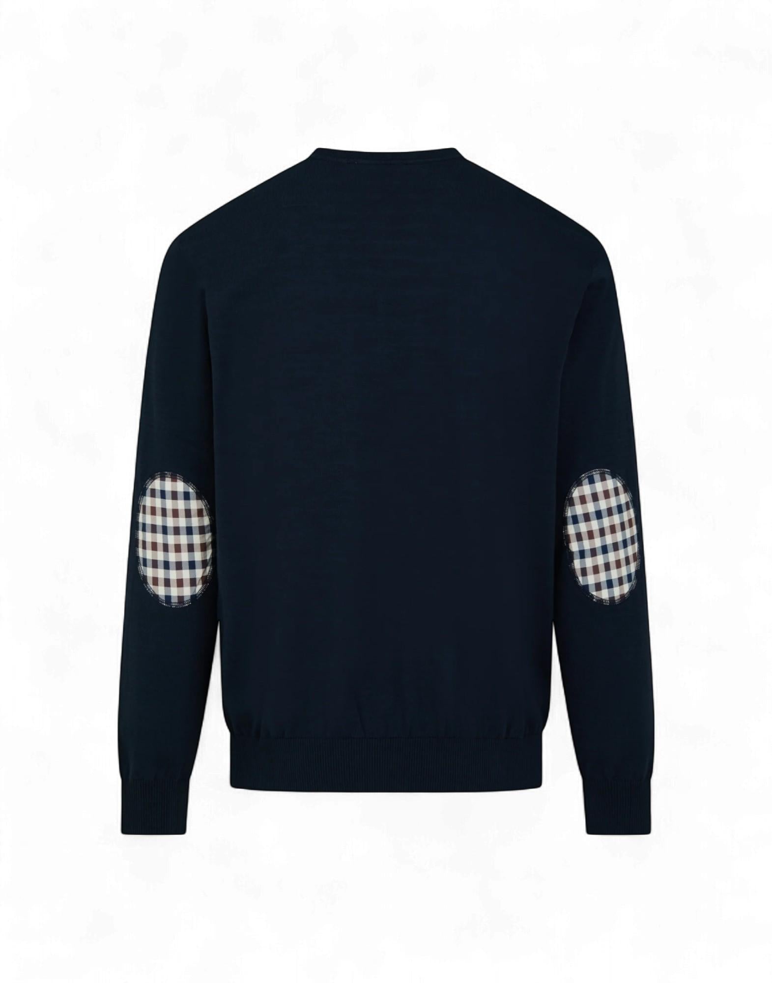 La silhouette pulita è valorizzata dalle patch sui gomiti in tessuto Club Check, dettaglio iconico che richiama con discrezione l'identità storica del brand. Collo, polsi e fondo a costine completano il modello con una finitura ordinata e senza tempo.