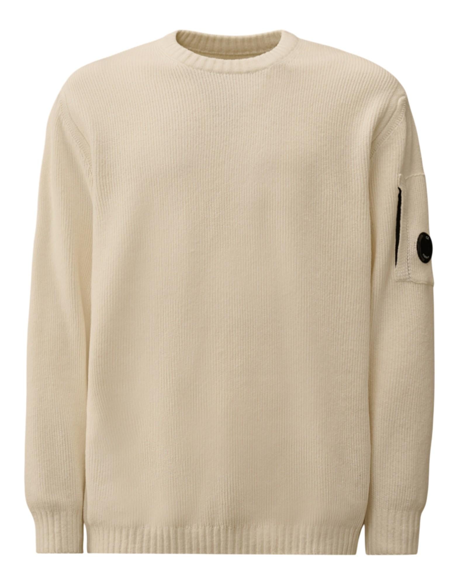 Maglione girocollo firmato C.P. Company, realizzato in ciniglia di cotone che dona una texture morbida e una finitura vellutata. Il modello, tinto in capo per ottenere sfumature di colore uniche, è rifinito con polsini e fondo a costine e arricchito dal caratteristico taschino con Lente C.P. Company sulla manica.