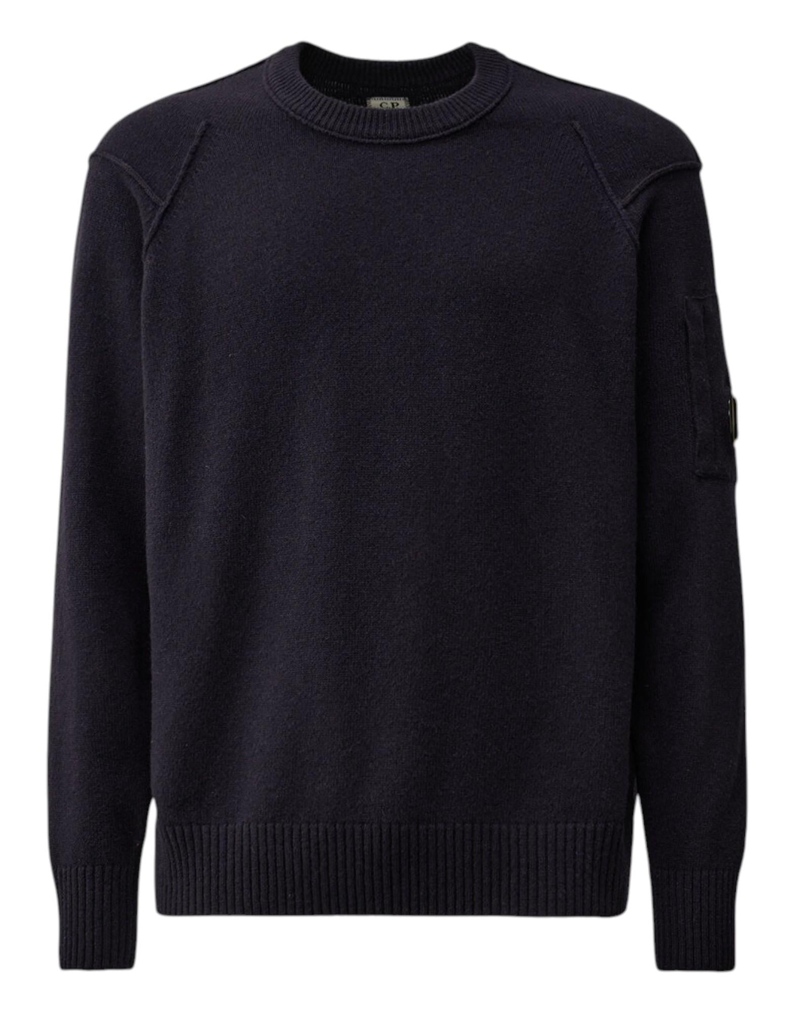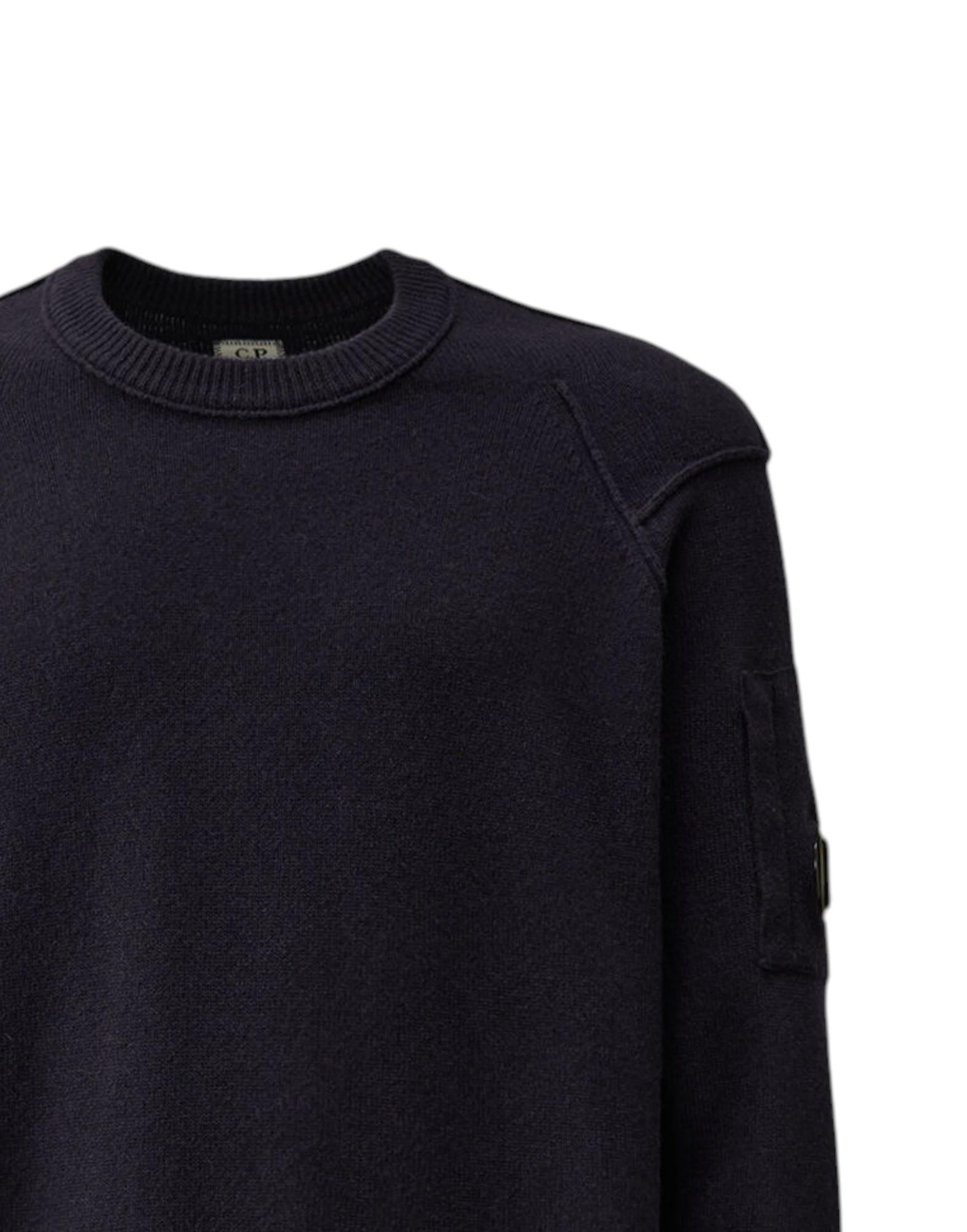 Maglione girocollo firmato C.P. Company, realizzato in morbida lana con aggiunta di nylon per garantire comfort, calore e maggiore resistenza all'usura. La lavorazione a coste valorizza il design essenziale e contemporaneo, tipico dell'estetica funzionale del brand.
