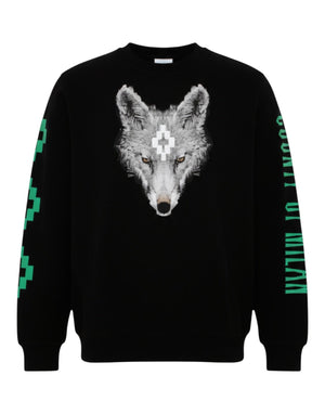 Marcelo Burlon County of Milan - Felpa Uomo Girocollo Cotone con Stampa Lupo Nero