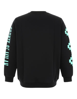Felpa uomo in cotone 100% firmata Marcelo Burlon County of Milan. Caratterizzata da un design dallo stile urbano e deciso, presenta la stampa frontale della celebre testa di lupo con simbolo geometrico centrale, icona del brand. Le maniche sono personalizzate con il logo "County of Milan" e motivi grafici a contrasto, che richiamano l'estetica street tipica della maison. Il tessuto in cotone felpato e la costruzione a girocollo assicurano comfort e versatilità, ideali per completare look casual contemporanei.