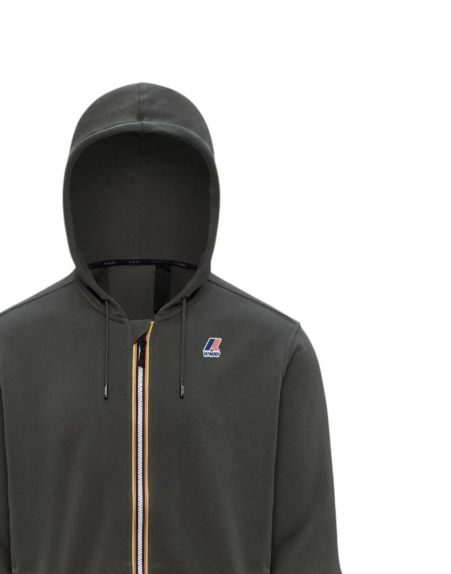 La struttura in misto cotone e poliestere garantisce traspirabilità e resistenza. Il capo è completato da chiusura frontale con zip, cappuccio regolabile con coulisse e polsini e fondo a costine per una vestibilità confortevole. Le tasche laterali e il carrè posteriore con doppia cucitura arricchiscono il design funzionale, mentre il logo stampato aggiunge un dettaglio distintivo.