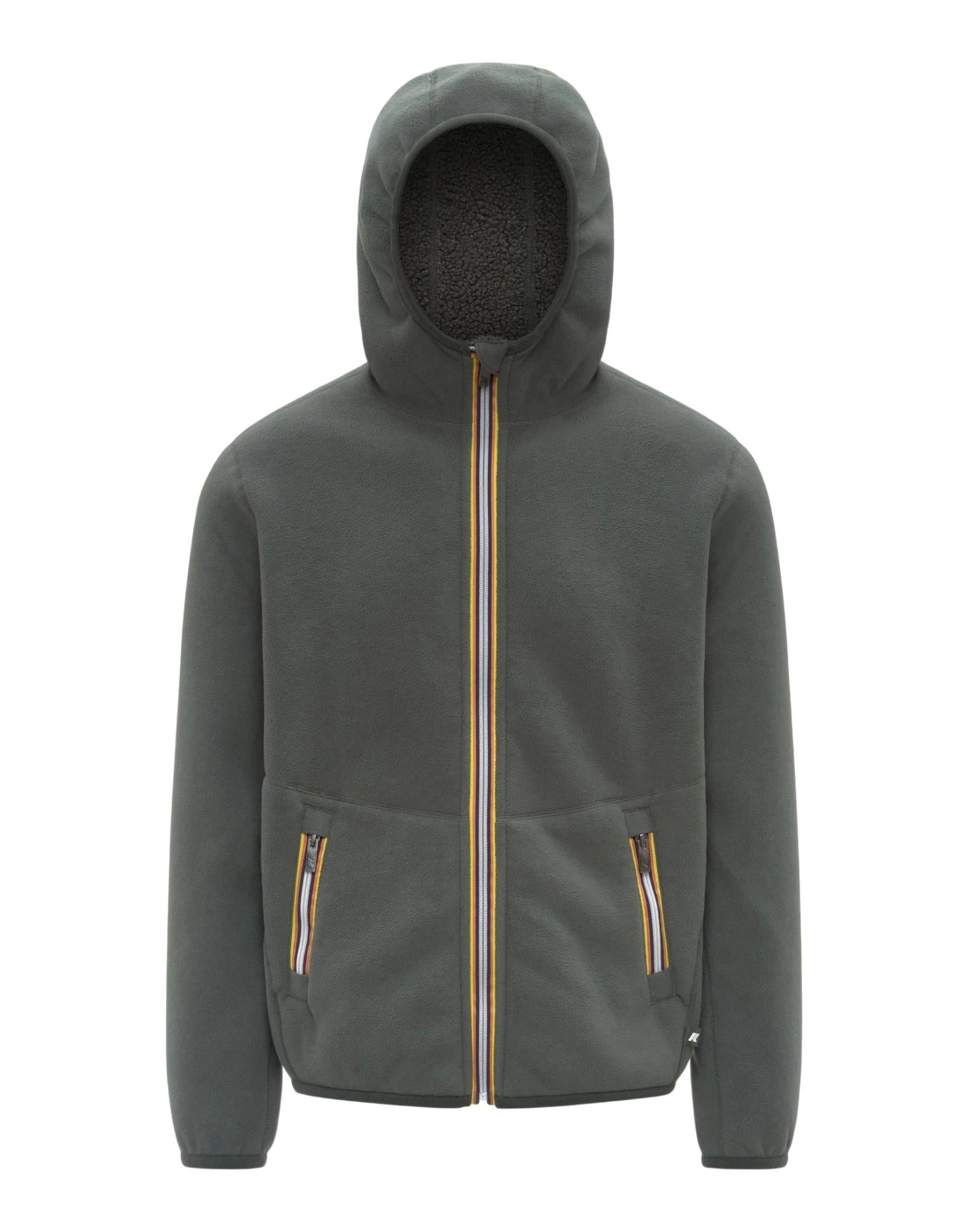 K-WAY - Giacca Uomo JACK SHERPA POLAR REVERSIBLE in Pile Reversibile Verde / Nero / Regular Fit