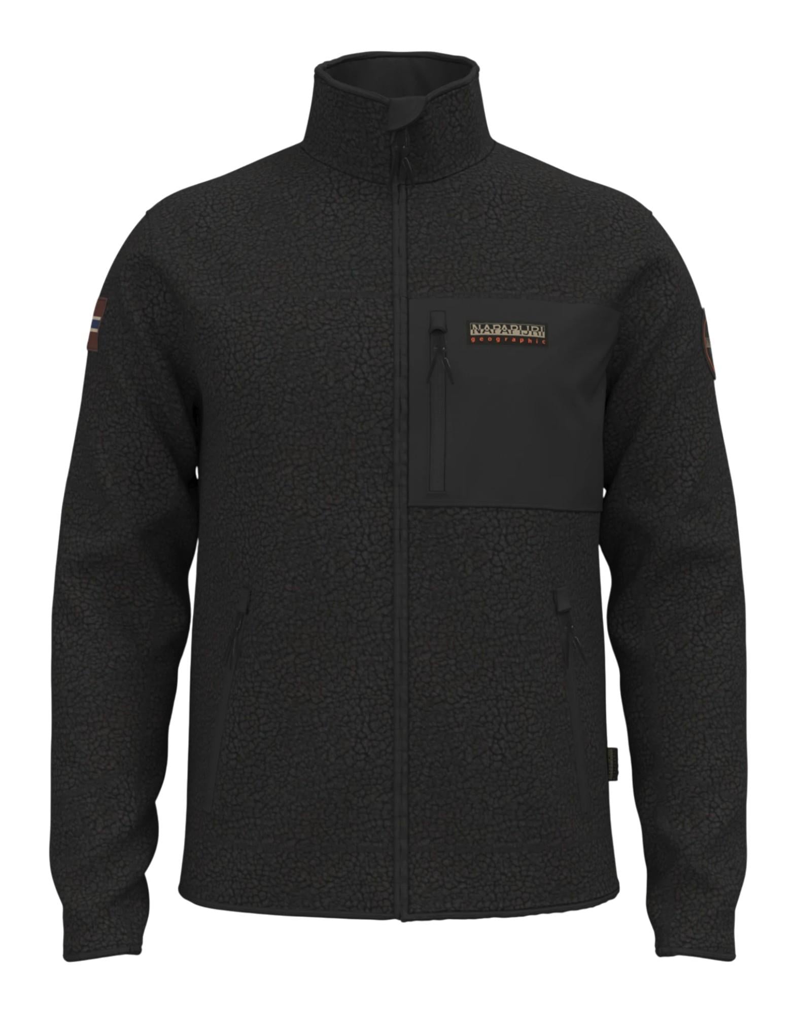 Giacca in pile dal taglio funzionale e contemporaneo, realizzata in morbido poliestere riciclato per garantire calore, comfort e durata nel tempo. Il tessuto principale, composto per l'80% da fibre riciclate, offre un'elevata traspirabilità e una mano soffice al tatto. Il modello presenta cappuccio fisso con sottogola, chiusura frontale con zip a tutta lunghezza e tasche laterali con chiusura a zip per una maggiore praticità. Le finiture elasticizzate su polsini e fondo migliorano la vestibilità, mentre i dettagli ricamati e il badge Napapijri completano il capo con un tocco autentico. Una giacca versatile, ideale per il tempo libero e per uno stile outdoor contemporaneo.