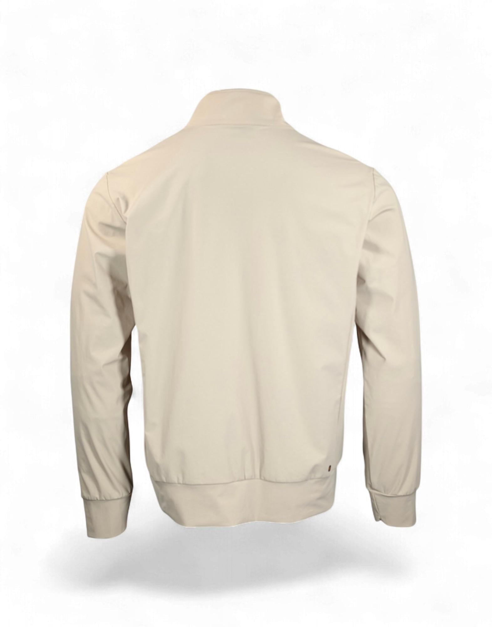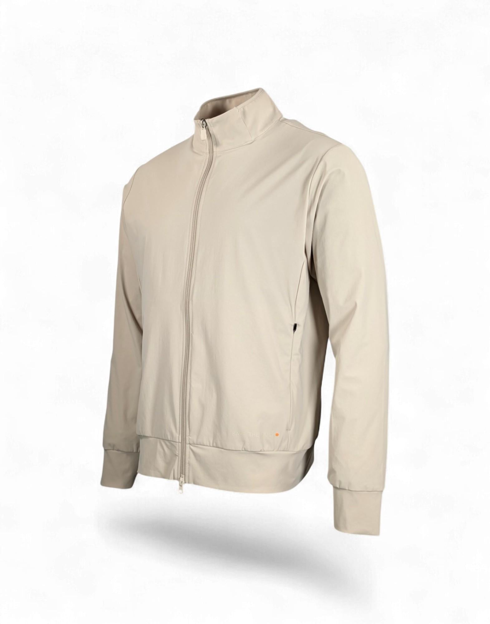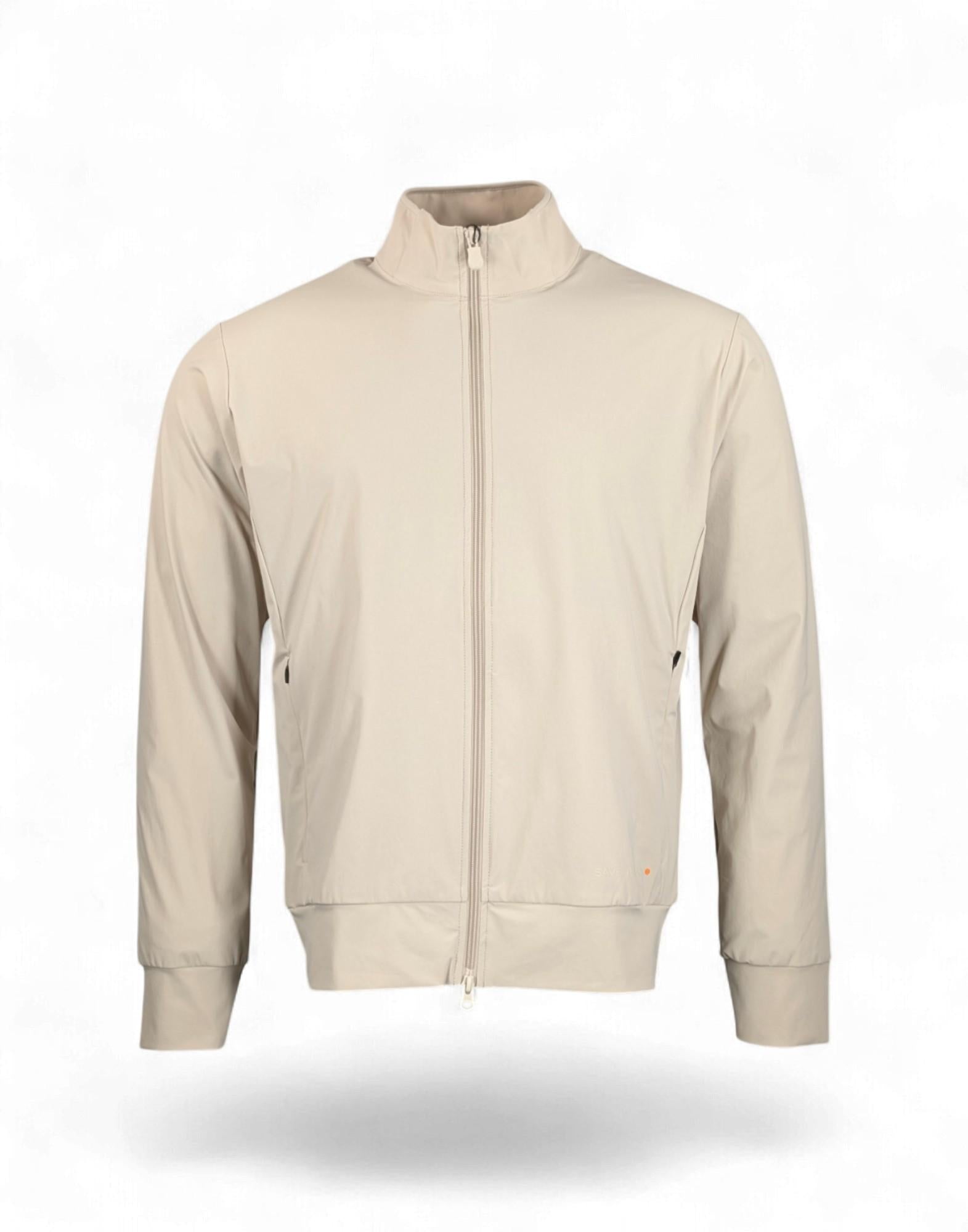 Realizzata in tessuto tecnico stretch, offre leggerezza, comfort e massima libertà di movimento. Il collo alto con chiusura frontale a zip garantisce protezione e praticità, mentre le tasche laterali con zip assicurano funzionalità. I polsini e il fondo elasticizzati contribuiscono a una vestibilità stabile e definita.