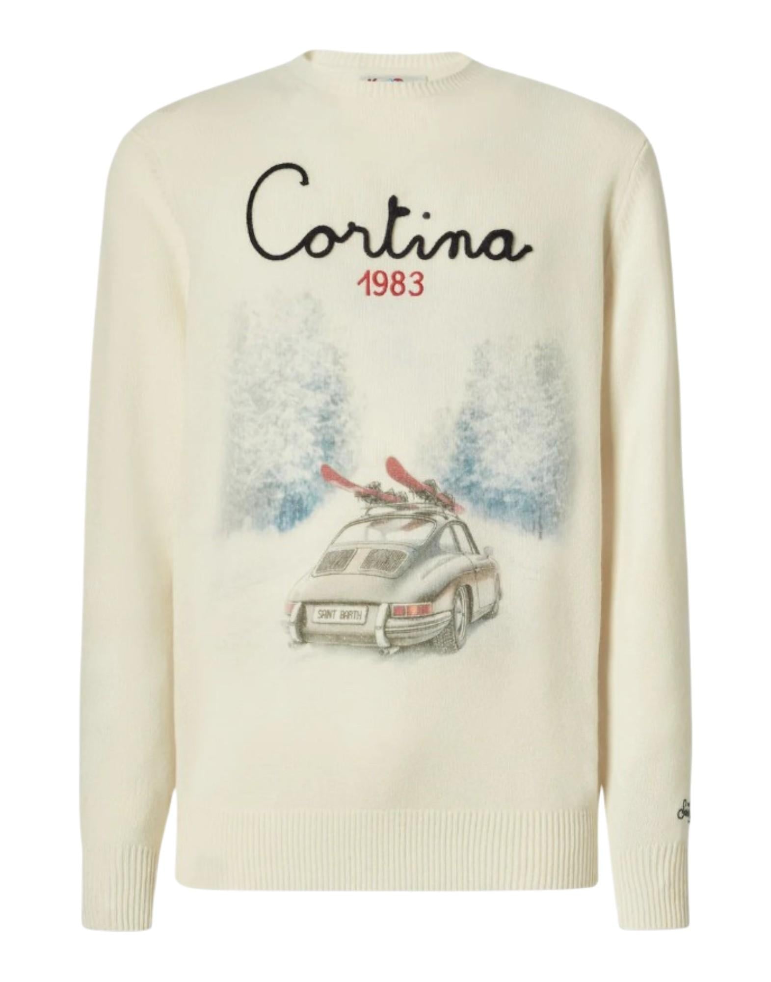 Maglione girocollo da uomo firmato MC2 Saint Barth, realizzato in un pregiato filato misto cashmere con lavorazione a maglia rasata finezza 7.