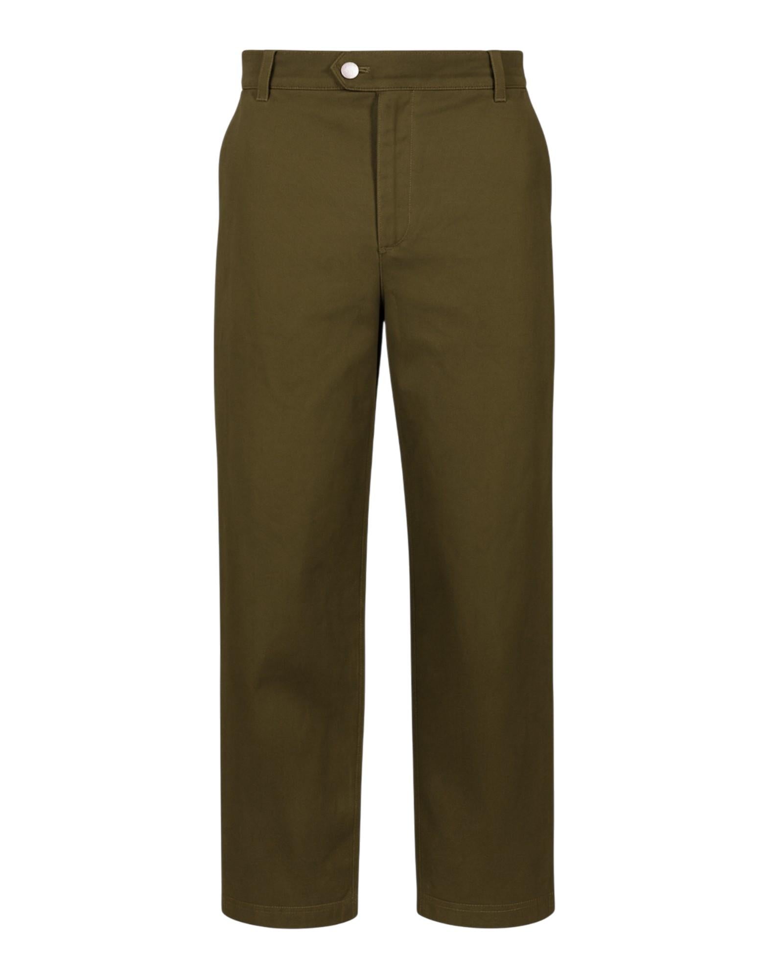 Pantalone dallo stile pulito e dalla linea regolare, ispirato al mondo workwear. Realizzato in resistente tessuto bull 100% cotone, offre struttura e comfort per un utilizzo quotidiano. Il design essenziale è completato da vita con passanti, chiusura con bottone e zip coperta, e cuciture tono su tono che ne valorizzano la sobrietà. Un capo versatile, perfetto per look casual o per interpretazioni più raffinate.