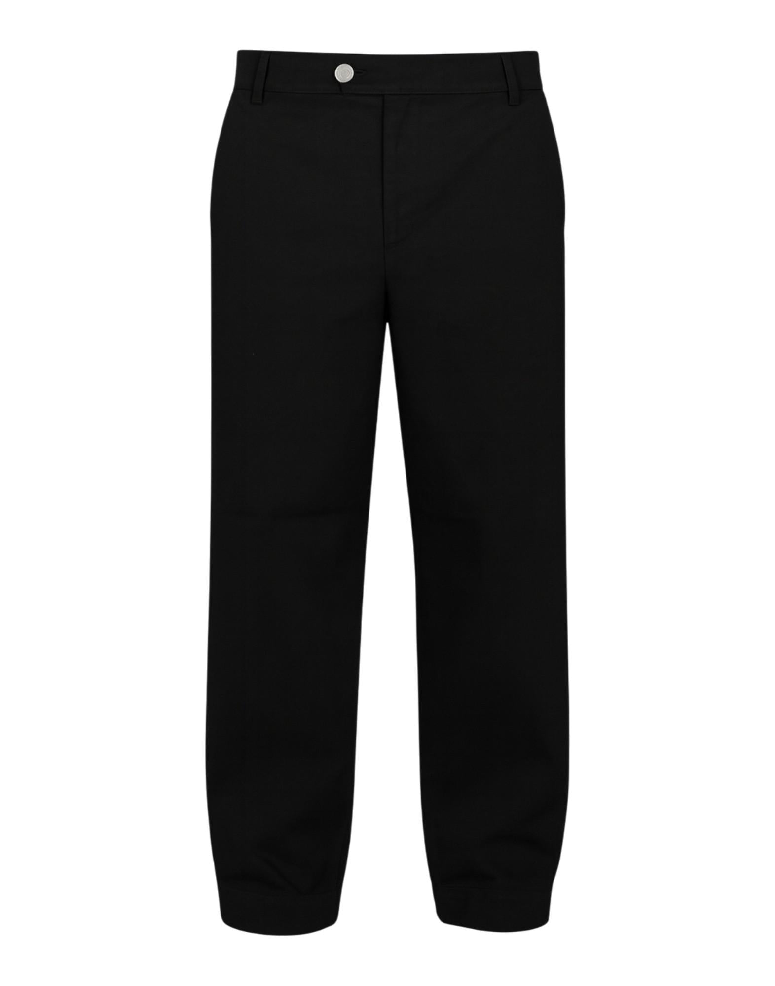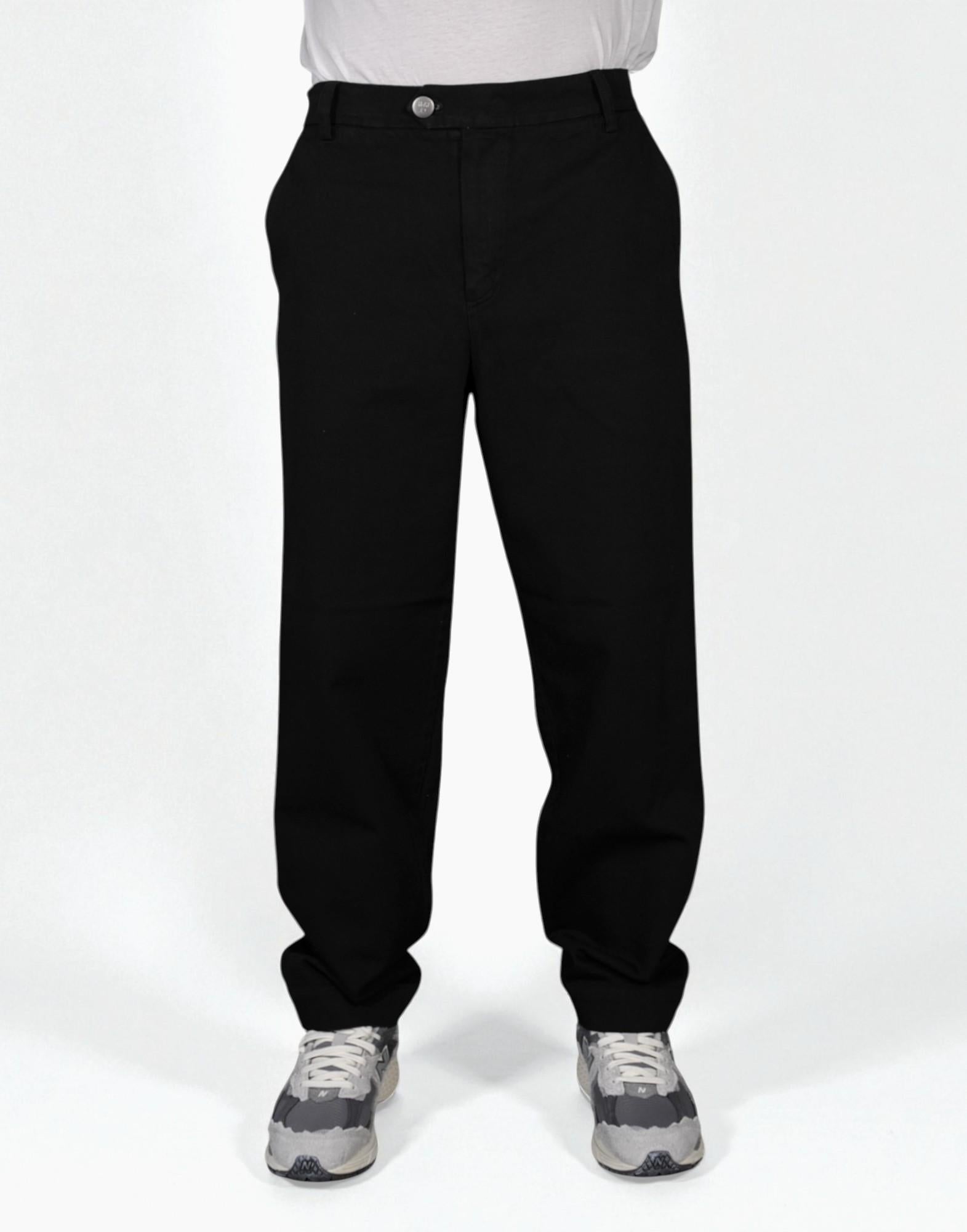 Clean, regular-fit trousers inspired by classic workwear design. Crafted from 100% bull cotton, a sturdy yet soft fabric offering both comfort and structure. The minimalist construction includes a waistband with belt loops, button and concealed zip fastening, and tone-on-tone stitching for a refined finish. A versatile piece ideal for casual or smart-casual outfits.