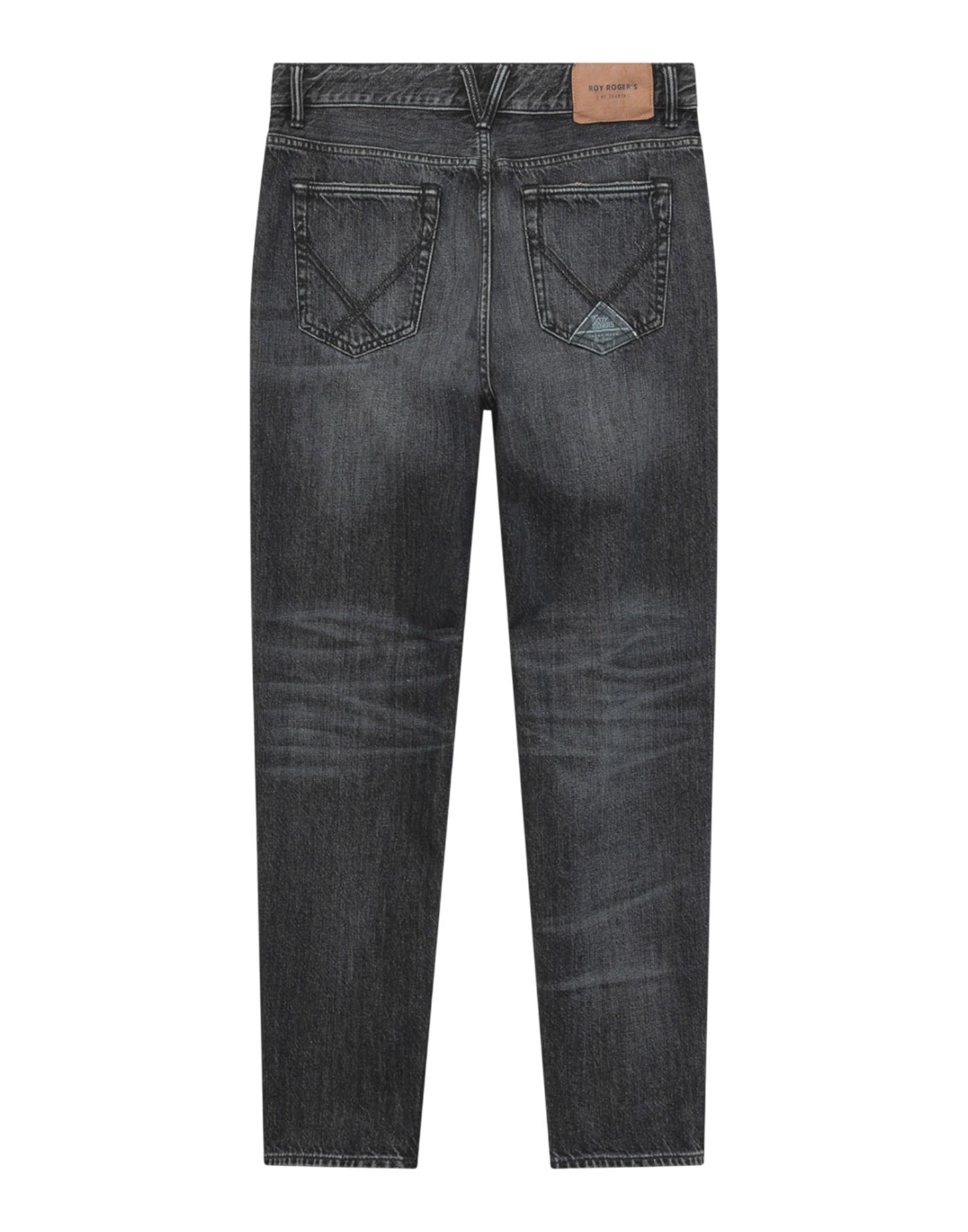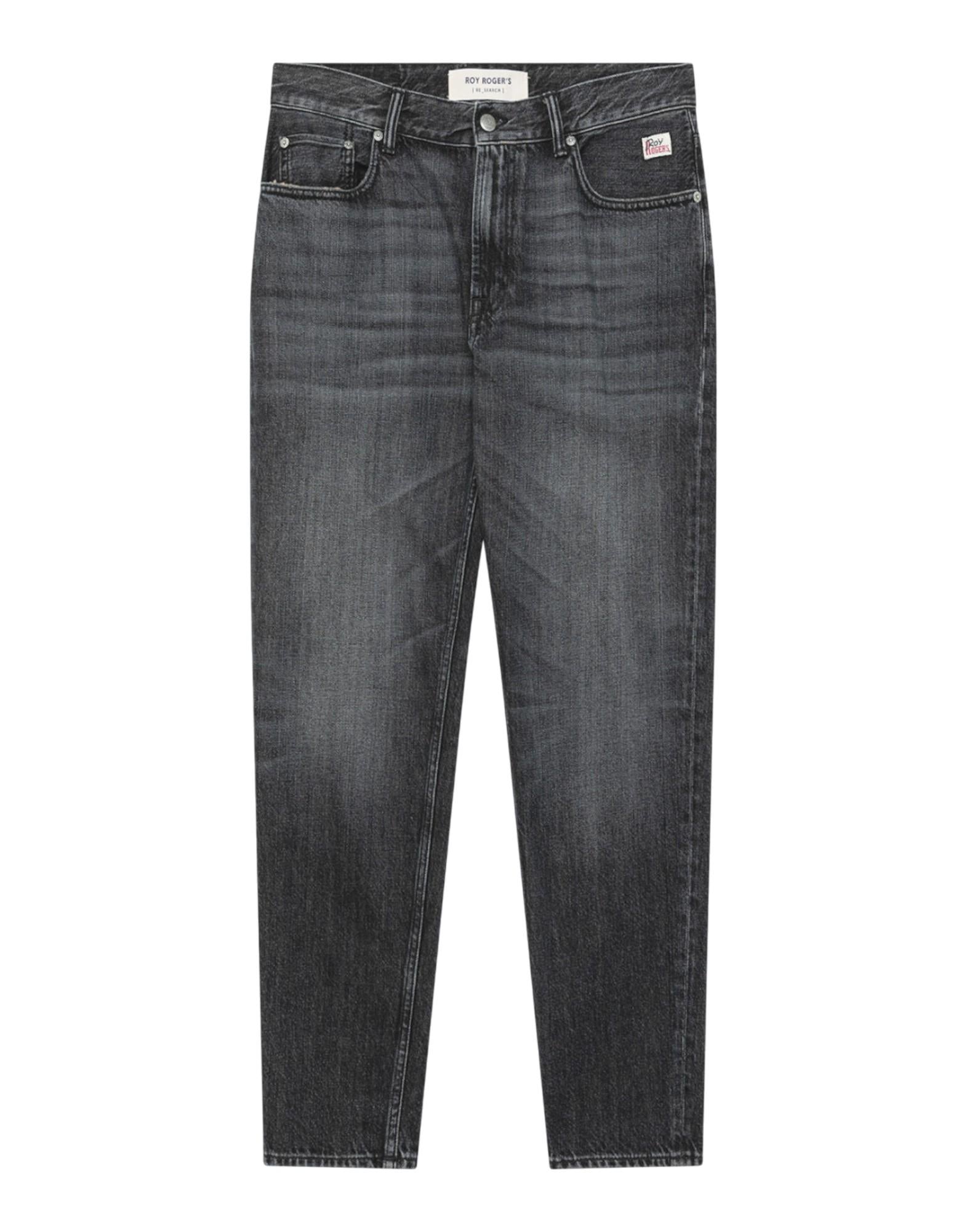 Jeans uomo firmati Roy Roger's della linea Re-Search, dedicata alla ricerca e all'innovazione sostenibile nel mondo del denim. Realizzati in denim 100% cotone tinta unita con effetto used, uniscono carattere urbano e cura artigianale. Il modello Dapper Parker presenta vita media con passanti, chiusura con bottone logato e zip, due tasche sul fronte e due tasche sul retro con label Roy Roger's applicata. La salpa stampata sul retro e il taglio carrot fit conferiscono un aspetto contemporaneo e rilassato, ideale per look casual dallo stile deciso.