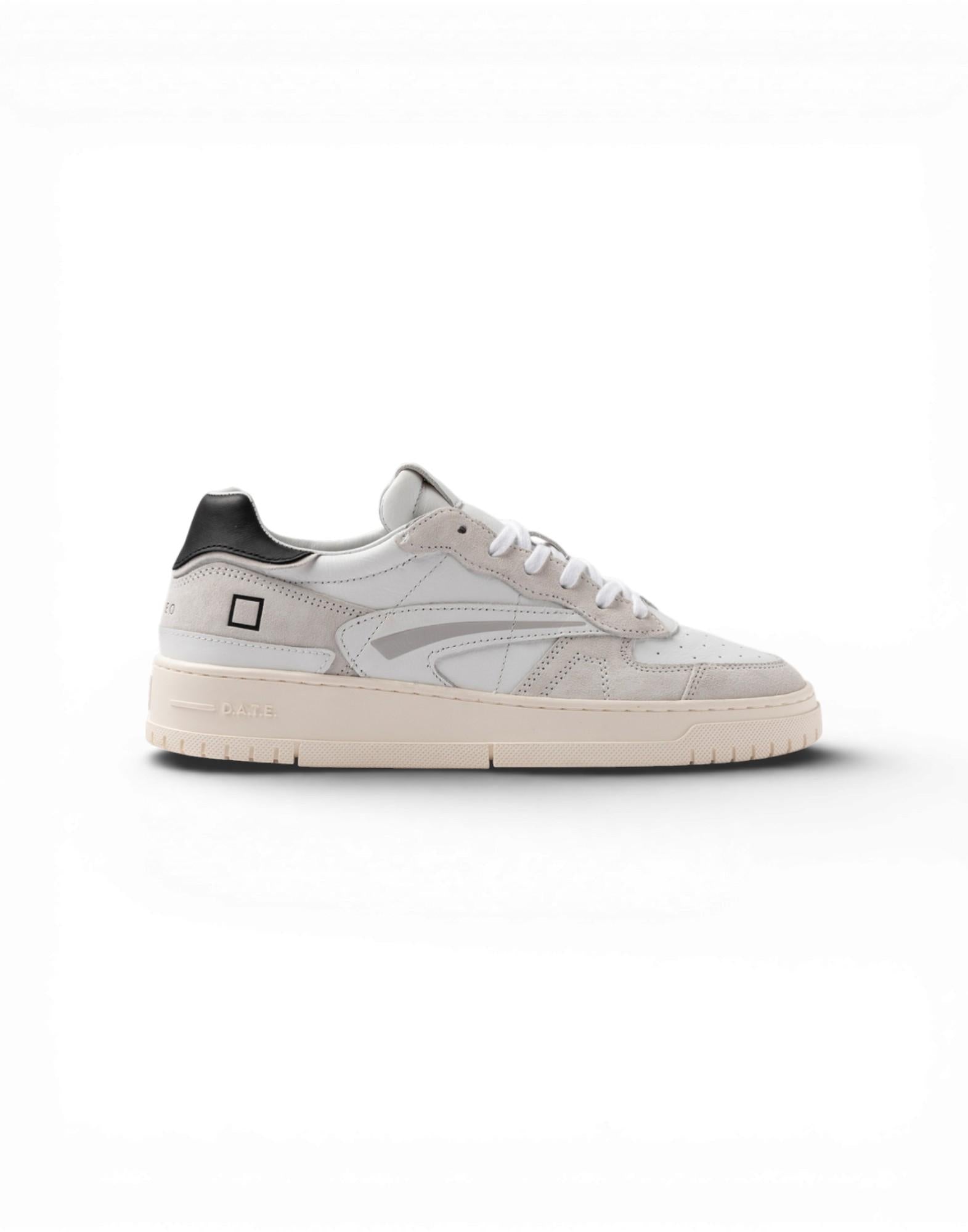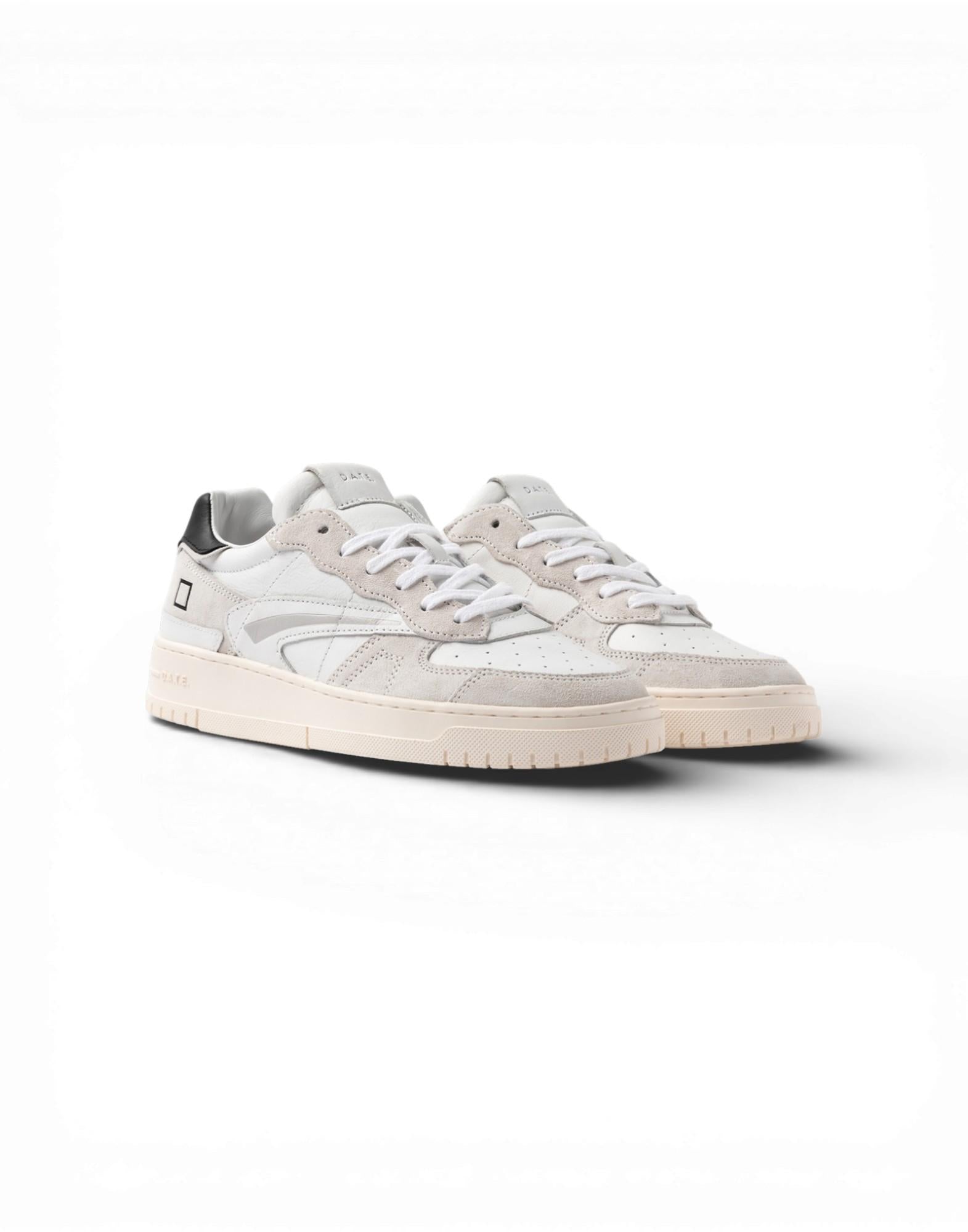 La punta traforata favorisce la traspirabilità, mentre sulla linguetta è cucita la label in pelle con logo D.A.T.E. I lacci in cotone e il logo quadrato impresso lateralmente completano il design. Il talloncino in pelle bianca e il nome del modello impresso sul retro definiscono l'identità del modello. La suola in gomma, cucita e alta 2,5 - 3,5 cm, presenta logo quadrato e scritta D.A.T.E. in rilievo. Il soletto interno rialzato di 2,5 cm garantisce comfort. Tutti i materiali selezionati sono Made in Italy. Vestibilità regular.