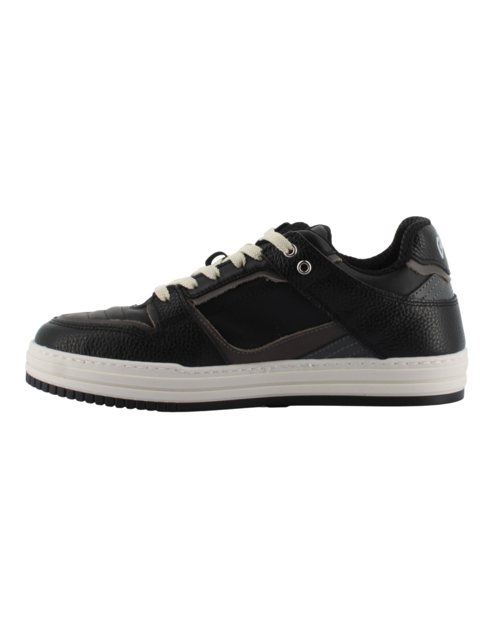 Sneaker GCDS dallo stile sportivo e contemporaneo, caratterizzata da una silhouette bassa con un mix di materiali e texture. Realizzata in pelle martellata e tessuto tecnico nei toni del nero e grigio, offre un equilibrio perfetto tra comfort e design urbano.
