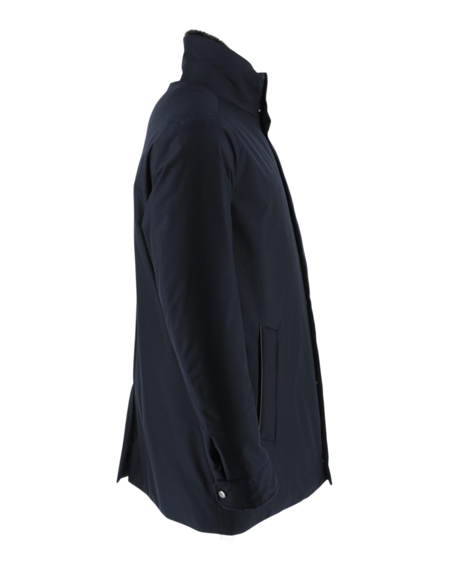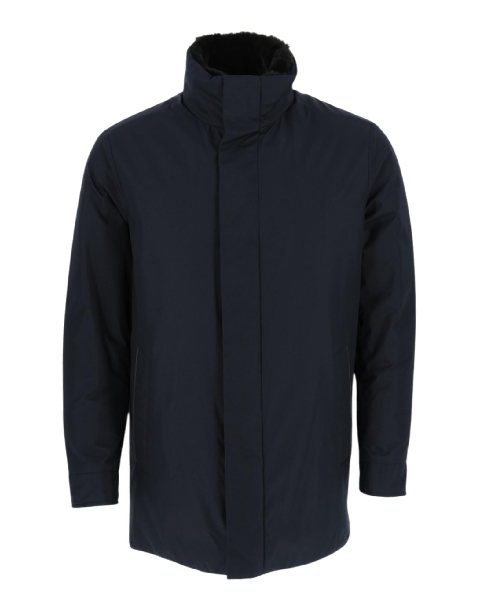 Carcoat dal design pulito e contemporaneo, caratterizzato da un collo alto avvolgente e da una chiusura frontale coperta che conferisce linearità alla silhouette. Il modello presenta tasche laterali verticali integrate, pensate per garantire praticità senza interrompere l'estetica minimale del capo. La struttura tecnica e la linea essenziale lo rendono un outerwear versatile, ideale per l'uso quotidiano.