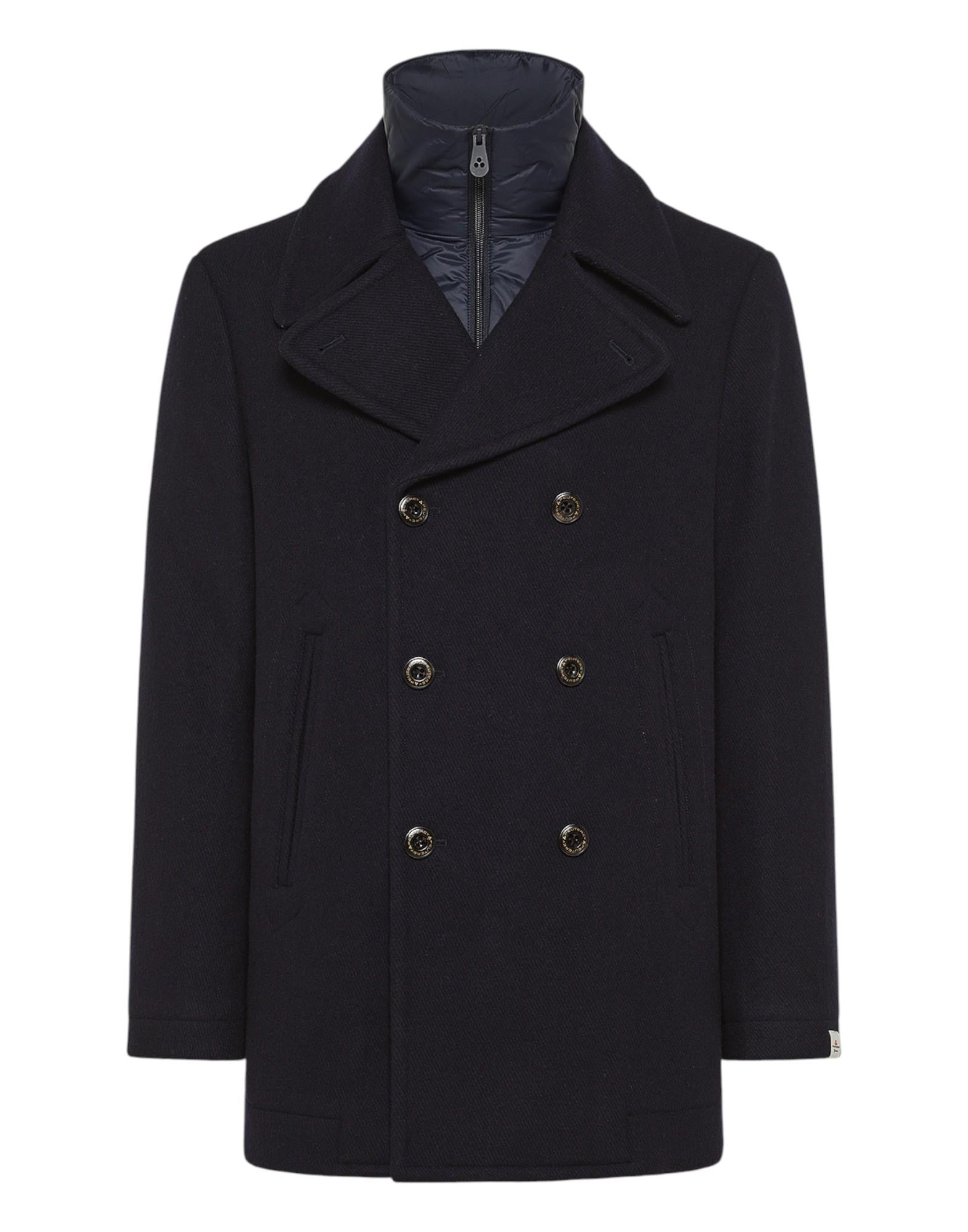 Giacca in stile marinaresco dall'estetica raffinata, realizzata in misto lana per offrire struttura, calore e un'eleganza senza tempo. Il design doppiopetto richiama l'ispirazione militare, arricchito da un collo ampio con rever classico che ne sottolinea il carattere formale e contemporaneo. Le maniche lunghe e il fondo leggermente svasato completano un capo equilibrato nelle proporzioni, versatile e adatto a molteplici occasioni. La vestibilità regolare lo rende perfetto sia per look formali che per abbinamenti casual ricercati.