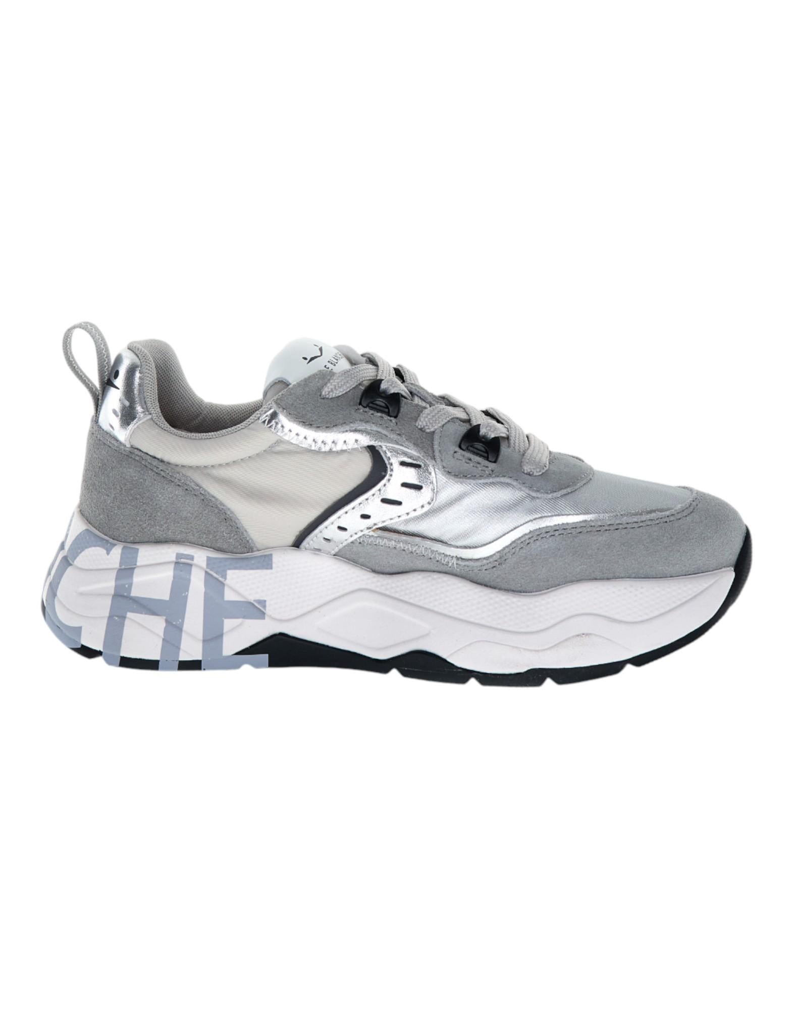 Sneaker dal design moderno e luminoso, realizzata in suede con inserti laminati e nylon. La suola chunky ultraleggera con dettagli grafici laterali completa uno stile urbano versatile, mentre la fodera traspirante assicura comfort quotidiano.