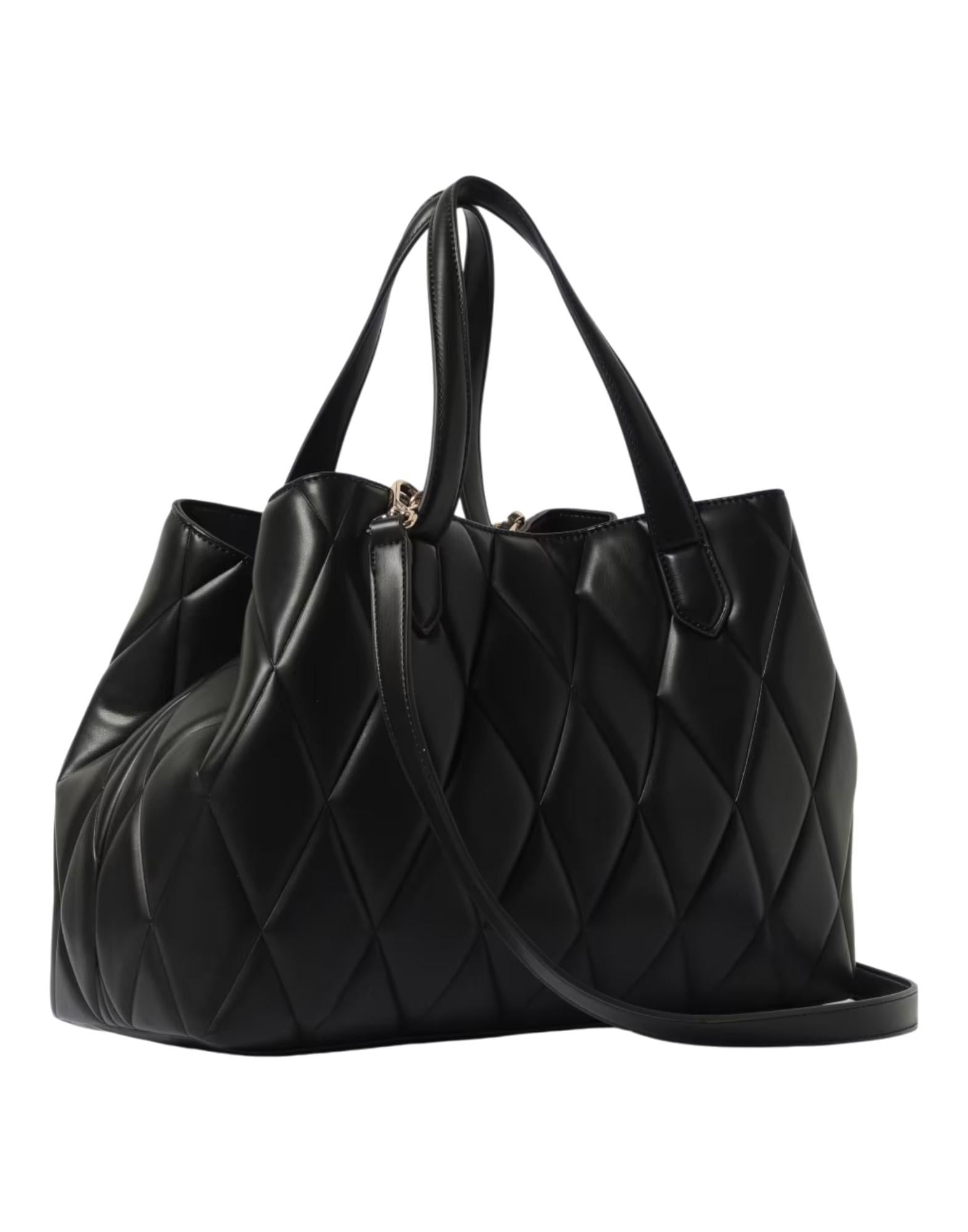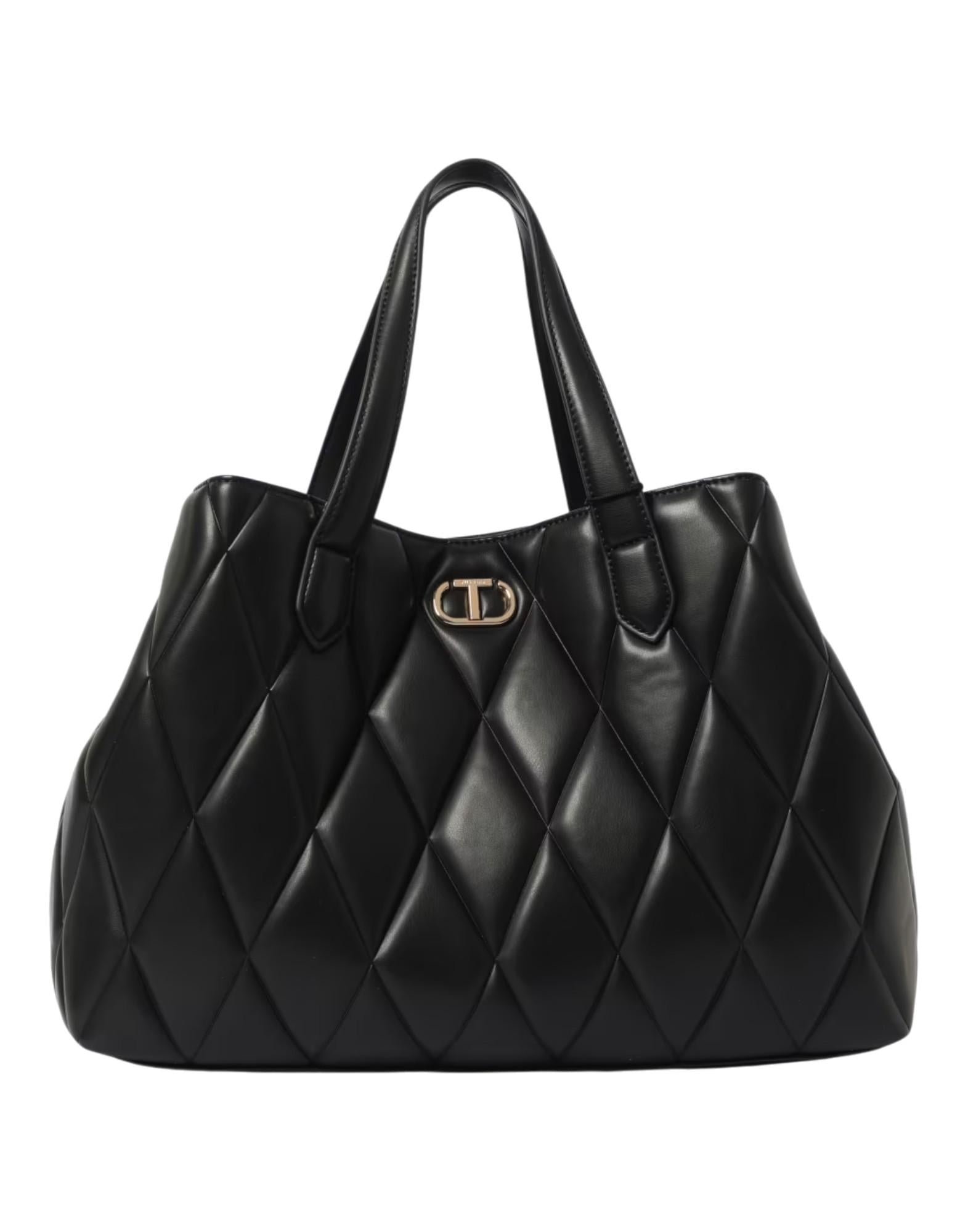 La borsa a mano in pelle sintetica matelassé Twinset unisce eleganza contemporanea e spirito casual. La costruzione svasata e la lavorazione trapuntata ne valorizzano il design, mentre il logo metallico frontale firma con stile l'accessorio. Dotata di doppio manico e tracolla regolabile e amovibile, si adatta con versatilità alle esigenze quotidiane.