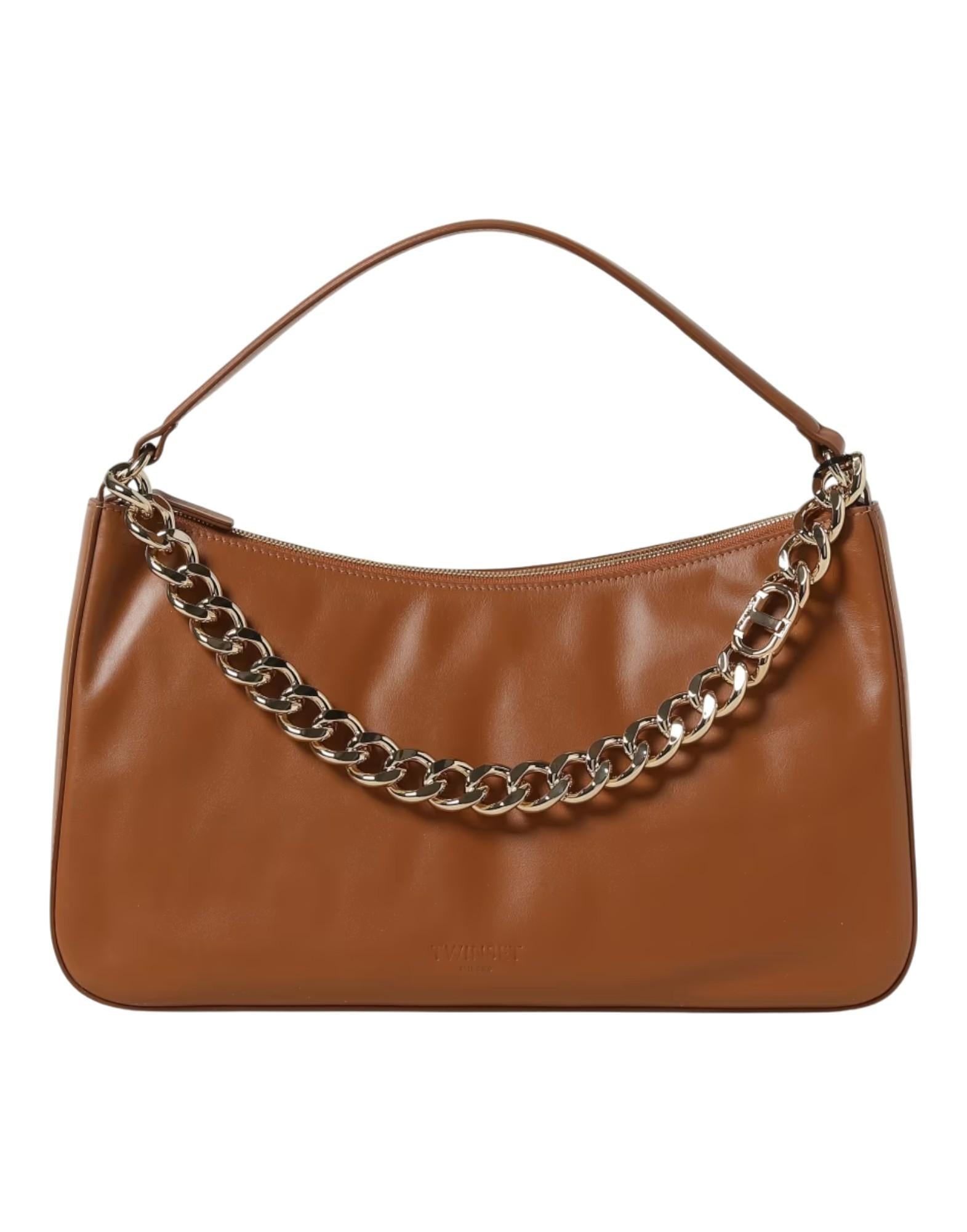 La borsa Liliane Twinset esprime un'eleganza senza tempo grazie al design classico e alle finiture raffinate. Realizzata in morbida pelle di vitello liscia, presenta una linea rettangolare dal profilo pulito e un manico intrecciato in maglia metallica e pelle, che aggiunge un tocco distintivo al modello. Dotata di chiusura superiore con zip, è pensata per essere portata sia a mano che a spalla, perfetta per completare look quotidiani o serali con classe.