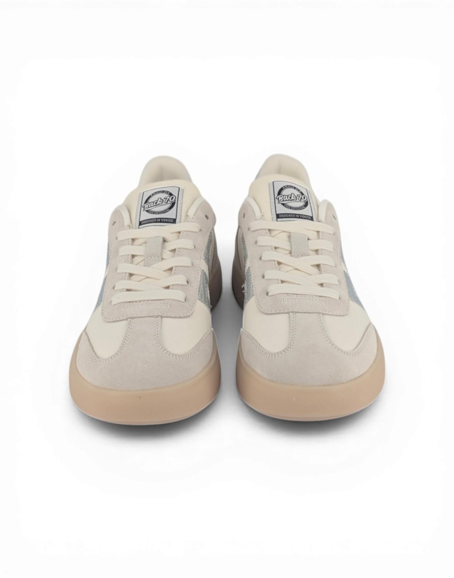 Sneakers dal design contemporaneo caratterizzate da una silhouette strutturata e da una suola platform che valorizza l'estetica del modello. La tomaia in tessuto leggero è arricchita da dettagli in suede, creando un equilibrio tra morbidezza e definizione. Il logo laterale in pelle con stampa effetto coccodrillo aggiunge un elemento distintivo e ricercato.