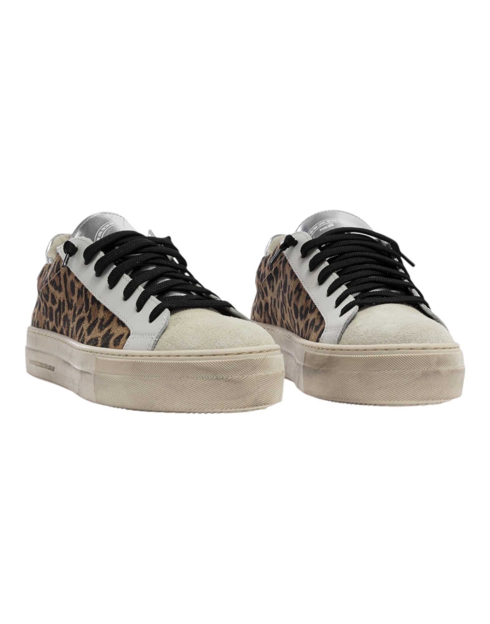 - Tomaia in pelle leopardata con logo P448 traforato