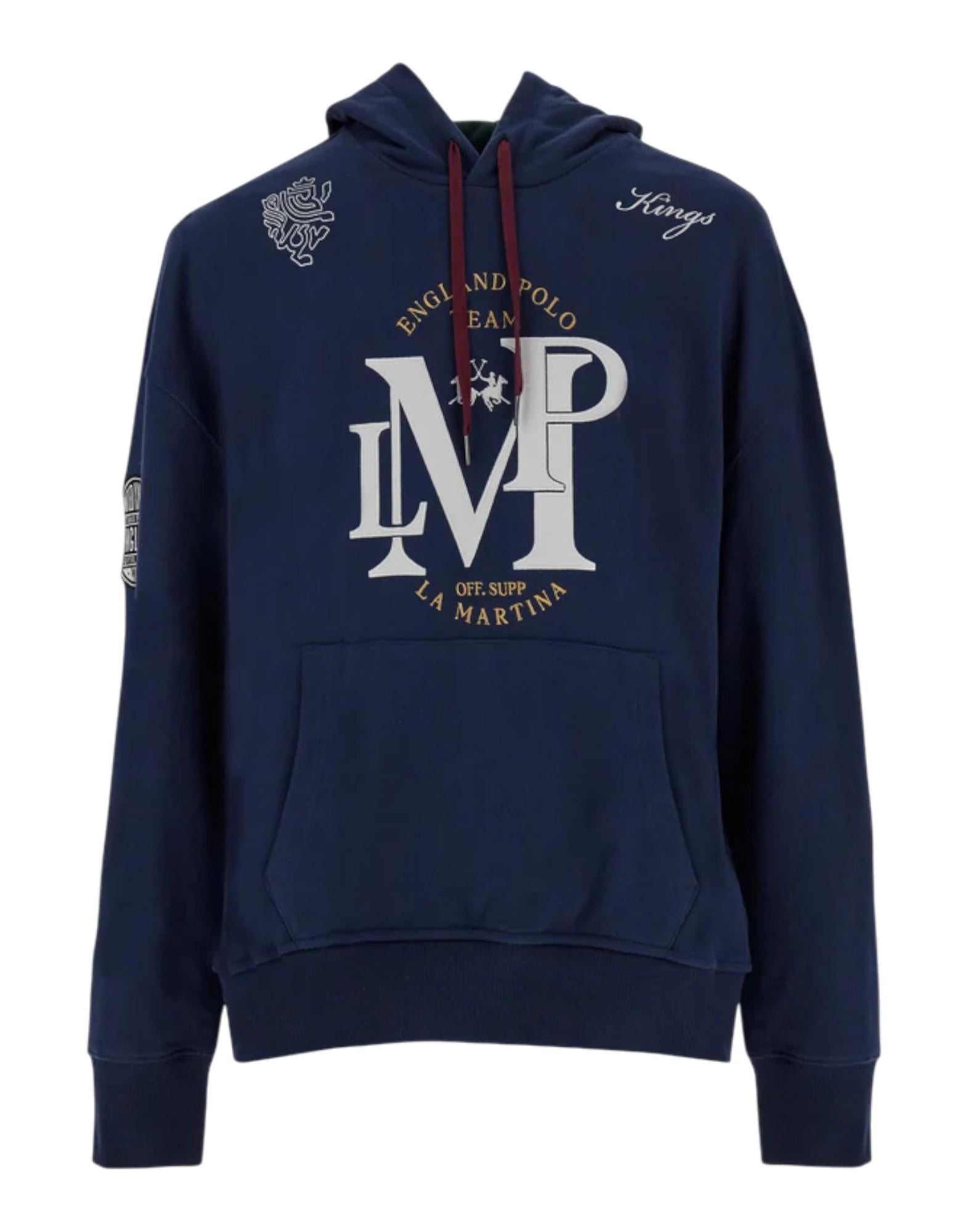 Felpa da uomo realizzata in morbido French Terry di cotone tinta unita, caratterizzata da uno stile moderno e sportivo. Il cappuccio regolabile con interno a contrasto e la tasca frontale a marsupio aggiungono praticità e comfort, mentre le grafiche a monogramma LM su petto e maniche donano un tocco distintivo e contemporaneo. Il logo ricamato a contrasto arricchisce il design con un dettaglio elegante, mantenendo l'identità dinamica del brand. Fondo e polsi in costina tono su tono completano la silhouette, assicurando una vestibilità regolare e rilassata.