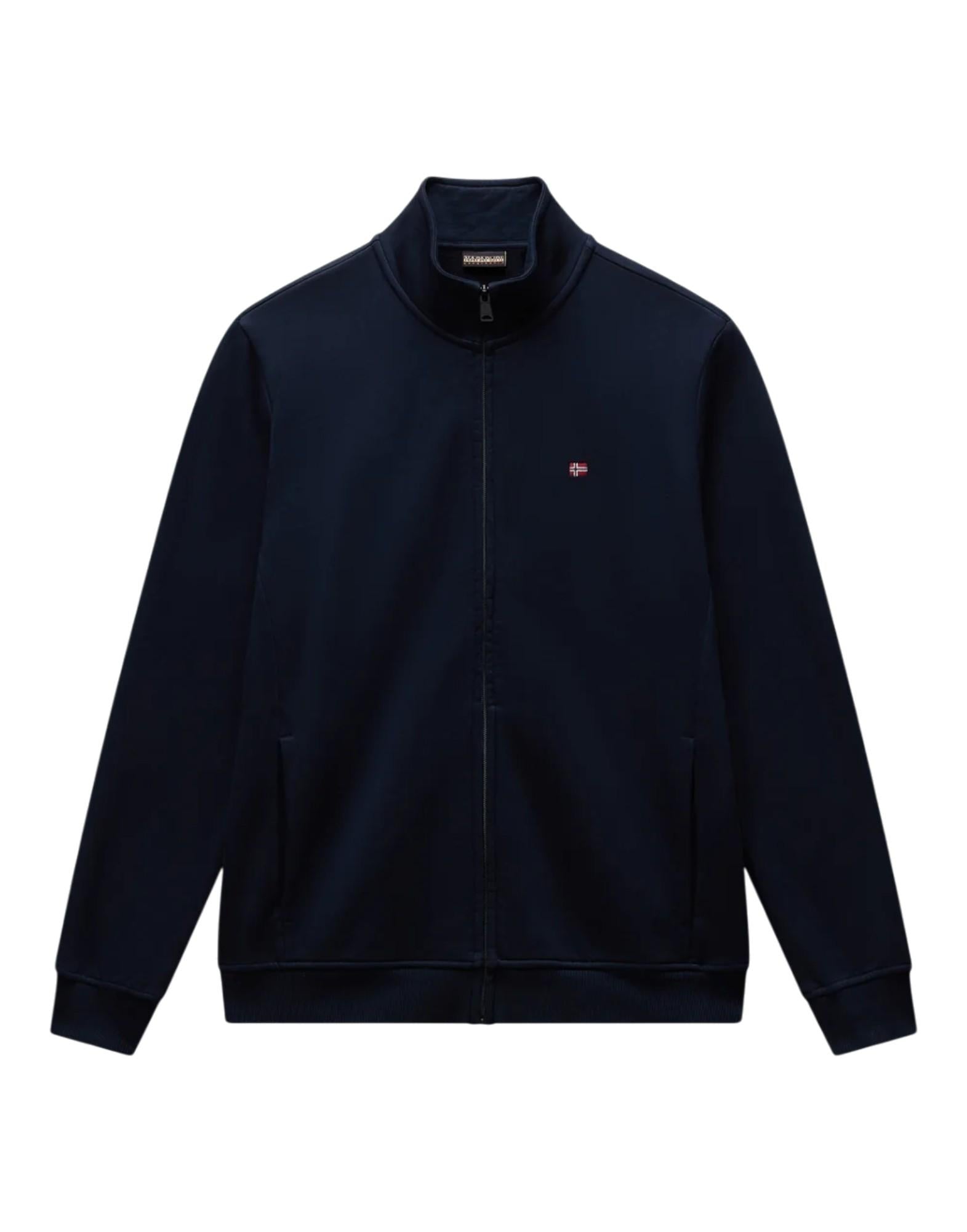 Felpa con zip dal design pulito e funzionale, realizzata in morbido jersey misto cotone e poliestere per garantire comfort, traspirabilità e resistenza nel tempo. La costruzione con zip a tutta lunghezza e colletto alto dona al capo un look versatile e moderno, adatto a ogni occasione. Le tasche laterali a filetto e le finiture a costine su polsini e fondo completano il design, mentre la vestibilità regolare assicura una perfetta combinazione tra libertà di movimento e stile contemporaneo. Un capo essenziale del guardaroba quotidiano, firmato Napapijri.