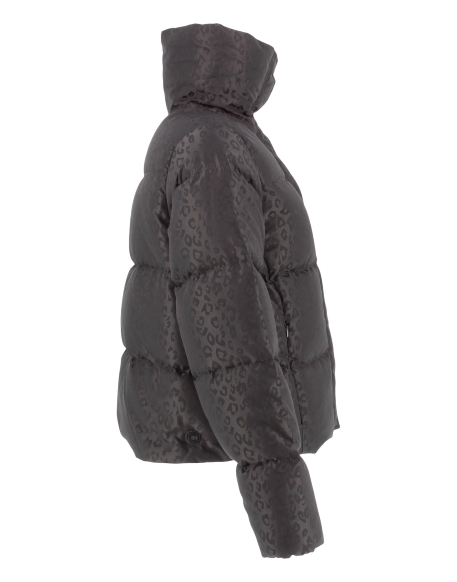 Piumino dall'anima decisa e contemporanea, caratterizzato da una stampa animalier all-over con giochi di lucido e opaco che donano dinamismo e personalità.