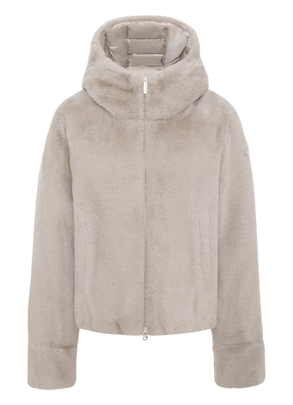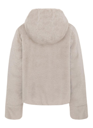 Piumino reversibile dal taglio leggermente cropped che unisce due stili in un solo capo. Un lato in pelliccia sintetica dona un look femminile e contemporaneo, mentre l'altro trapuntato offre uno stile più casual. Dotato di cappuccio fisso e tasche laterali con zip, assicura funzionalità e comfort per l'inverno. Vestibilità regolare.