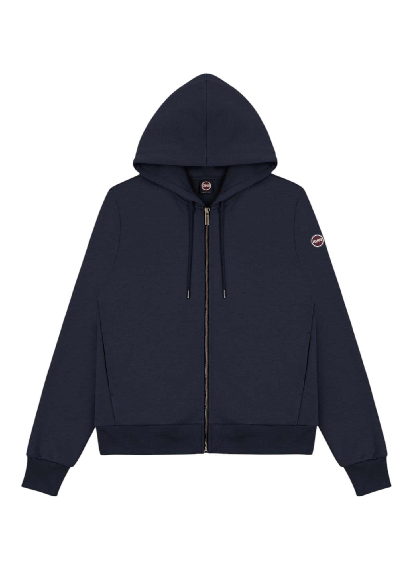 Essenziale e versatile, questa felpa sportiva con cappuccio regolabile è realizzata in morbido cotone misto poliestere con interno felpato, perfetta per l'inverno. La chiusura con zip frontale e le tasche laterali aggiungono praticità, mentre polsini e fondo in maglia a costina garantiscono una vestibilità confortevole. Il logo Colmar Originals applicato sulla manica sinistra completa il design.