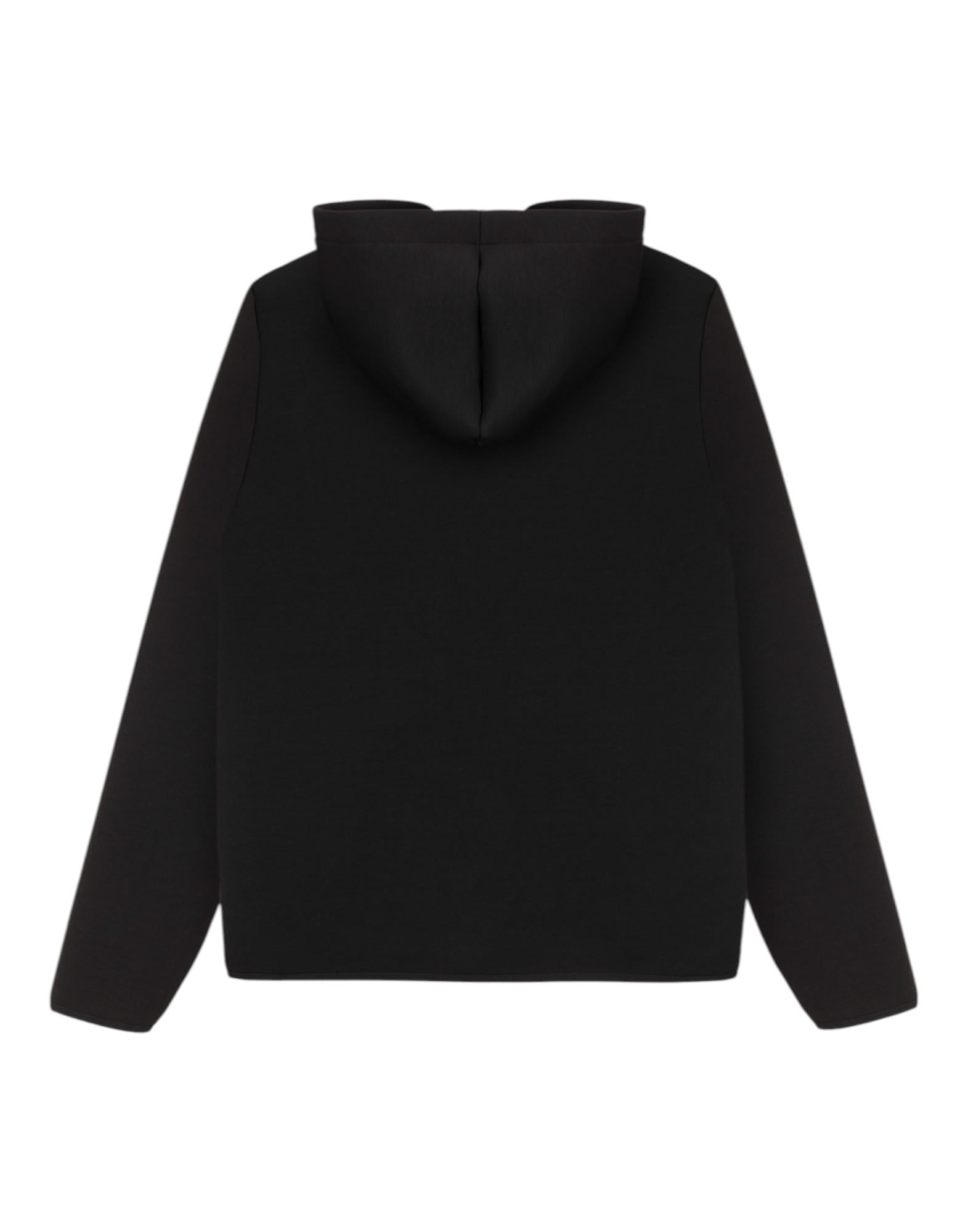 Felpa dallo stile moderno e tecnico, realizzata in tessuto scuba mélange che dona struttura e carattere. Le cuciture a vista ne accentuano il design dinamico, mentre il cappuccio regolabile con coulisse e le tasche laterali offrono praticità e comfort. Polsini e fondo in nastro elasticizzato, coordinati al logo Colmar Originals applicato sulla manica sinistra, completano il look. Perfetta anche come giacca leggera per i primi freddi.