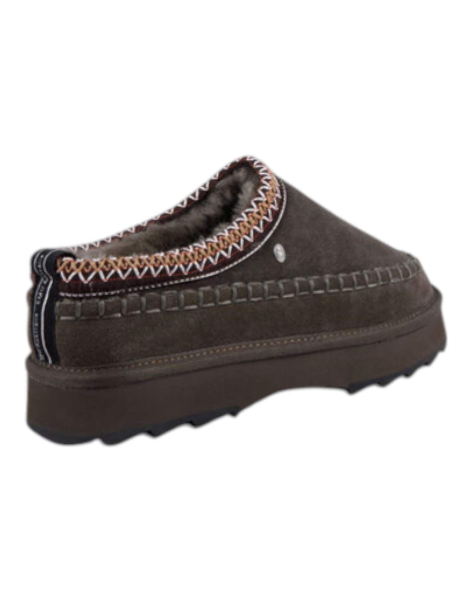 Un mix perfetto di comfort e stile, lo Sharky Adventure Scuff è pensato per offrire un rifugio accogliente ai piedi. Realizzato con tomaia in suede e fodera in morbida pelle di pecora australiana, assicura calore e benessere. I dettagli distintivi, come il bordo ricamato in stile azteco e le cuciture avvolgenti, donano un look unico e sofisticato, completato dalla robusta suola "sharky" dal carattere avventuroso.