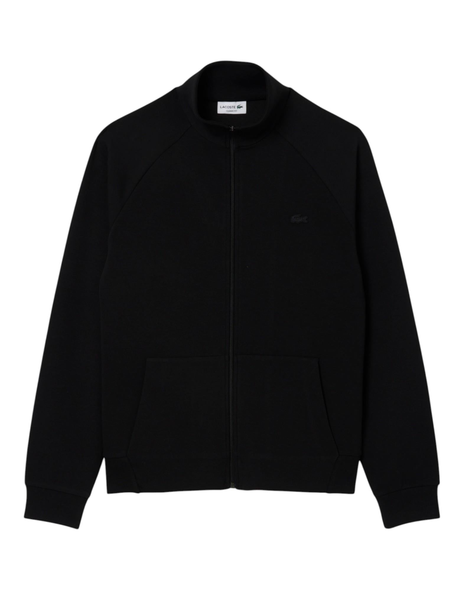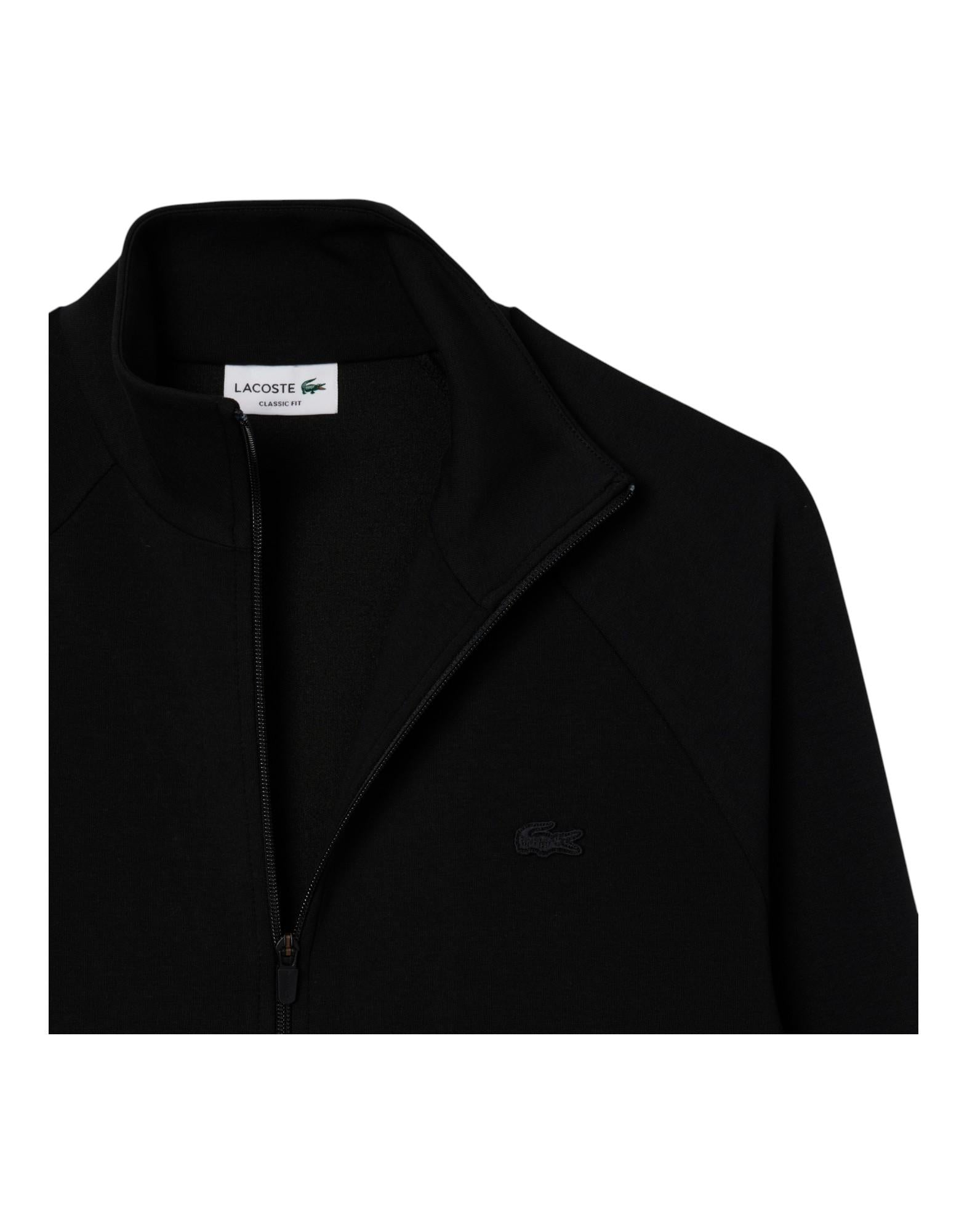 Felpa con zip dal design contemporaneo che riflette l'equilibrio tra eleganza e stile sportivo tipico di Lacoste. Realizzata in jersey double face che combina cotone organico e poliestere riciclato, offre comfort naturale e versatilità. I pannelli laterali a costine e il coccodrillo tono su tono ricamato sul petto completano un look casual chic.