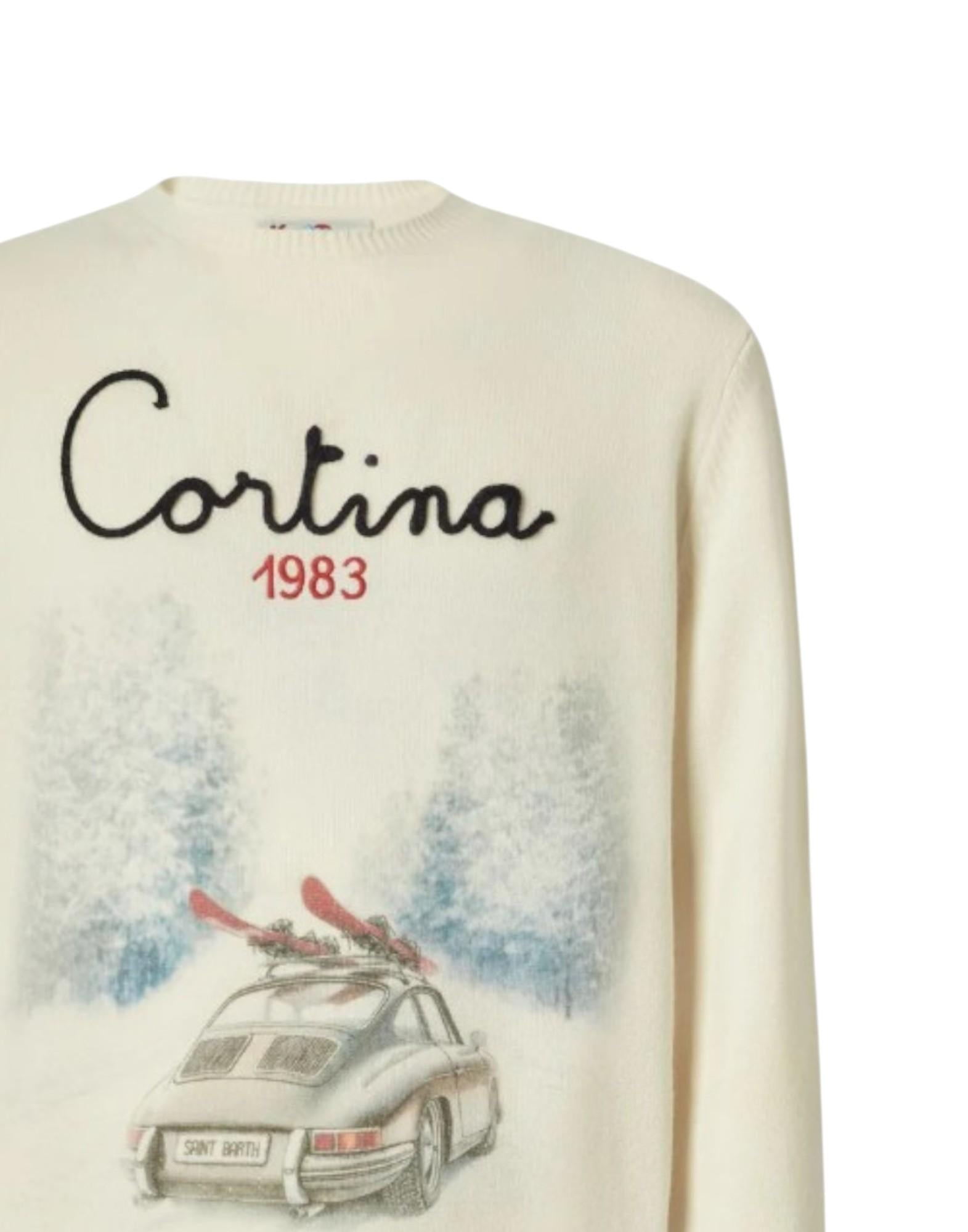 Maglione girocollo da uomo firmato MC2 Saint Barth, realizzato in un pregiato filato misto cashmere con lavorazione a maglia rasata finezza 7.