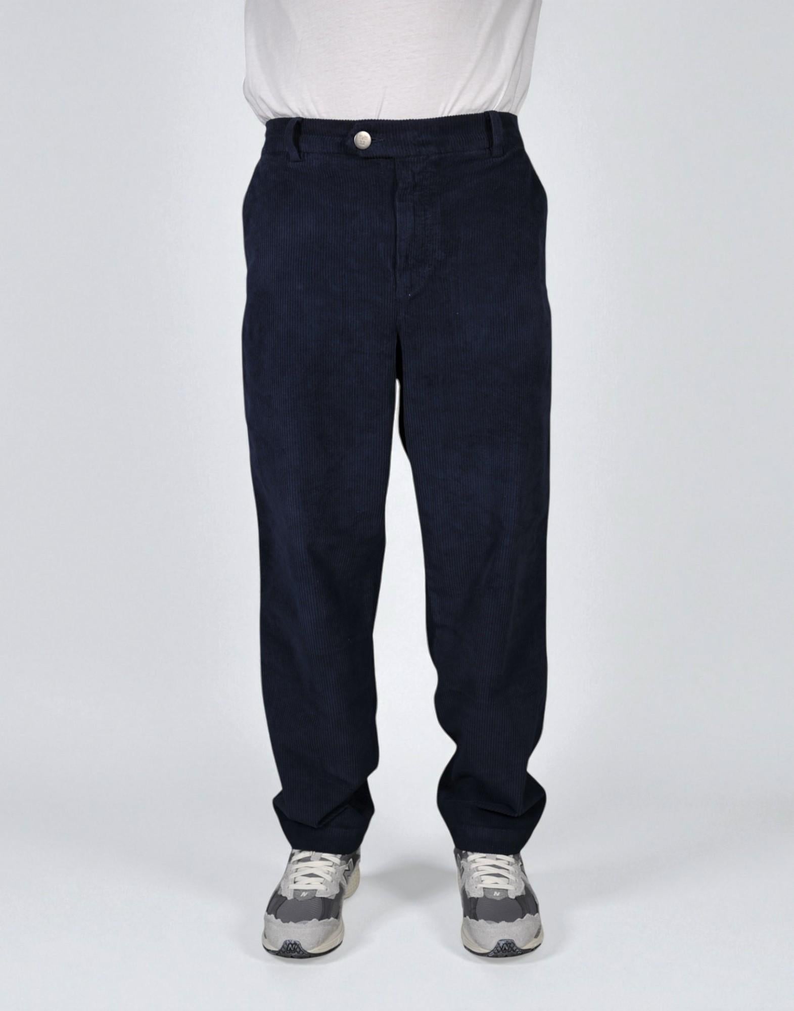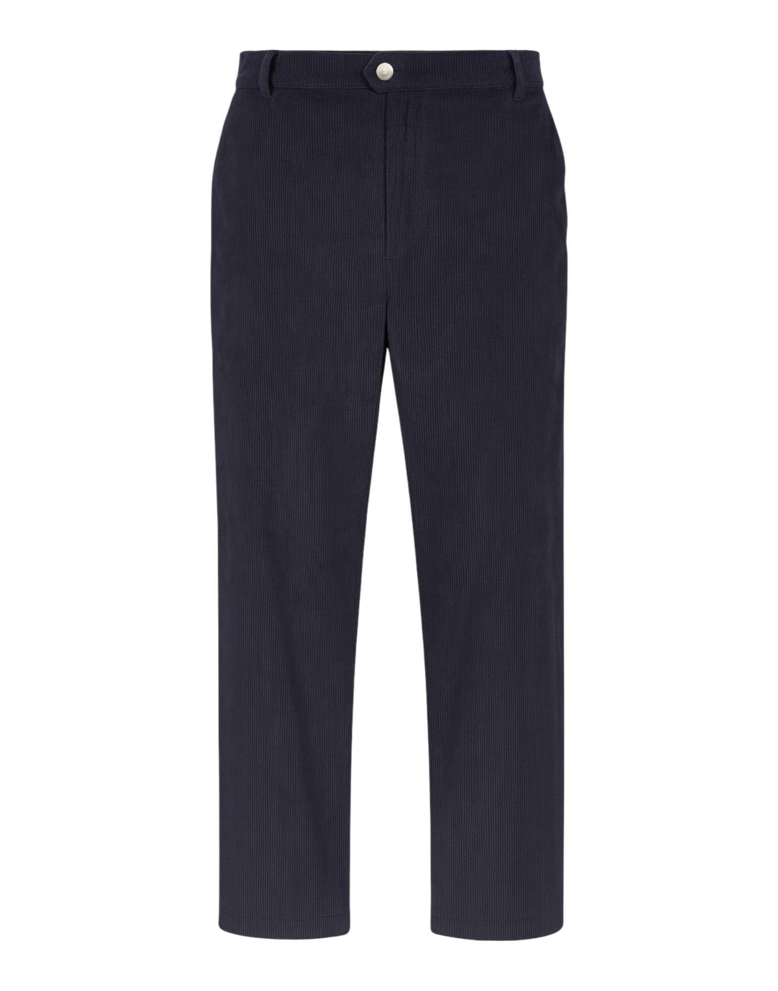 Pantalone dal taglio regolare ispirato al mondo workwear, realizzato in velluto millerighe elasticizzato che unisce comfort e struttura. La texture morbida e calda del tessuto dona profondità al colore e rende il capo ideale per la stagione più fredda. Presenta vita con passanti, chiusura frontale con bottone e zip coperta, e finiture tono su tono per un'estetica pulita e versatile.